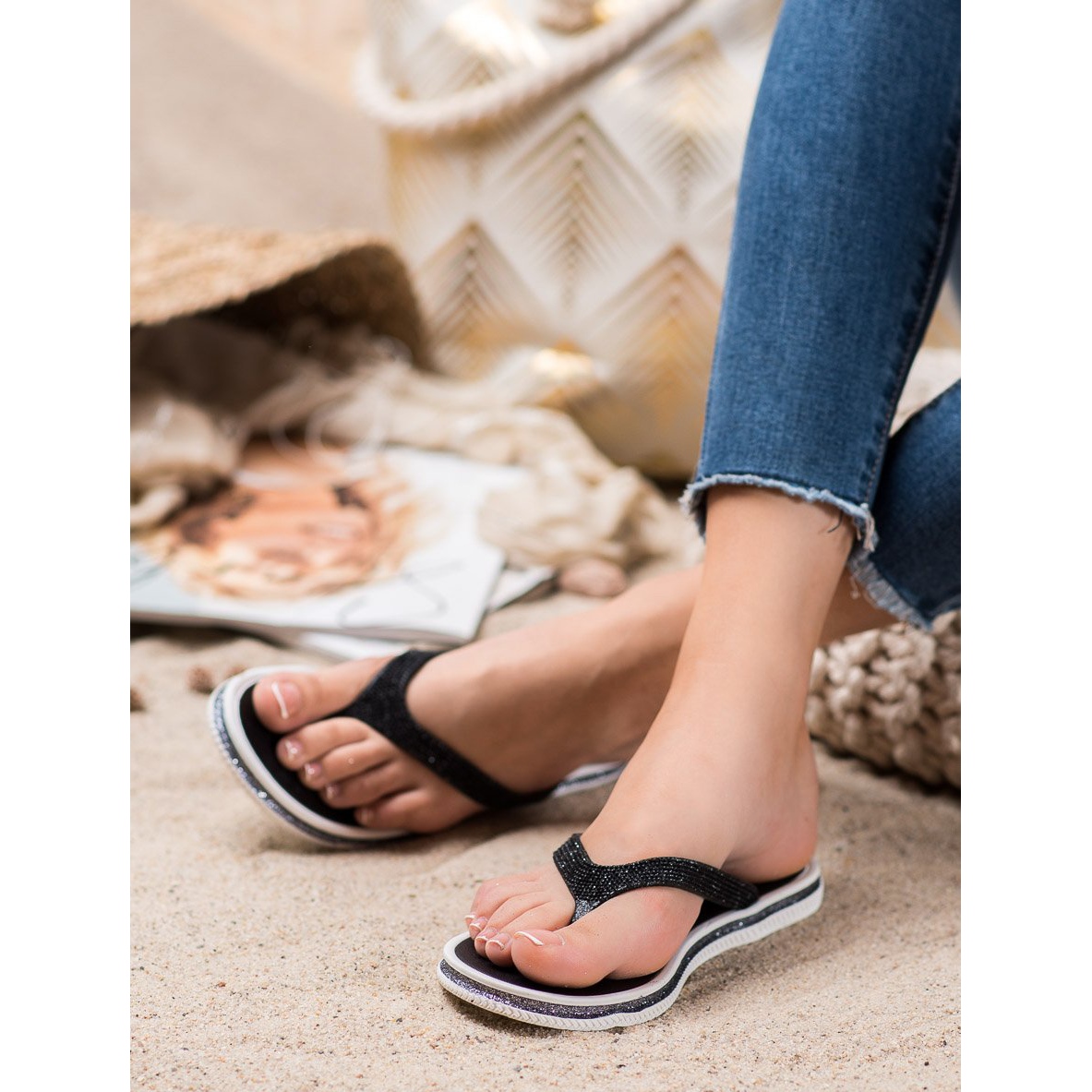Détails: Bona Tongs à paillettes noir