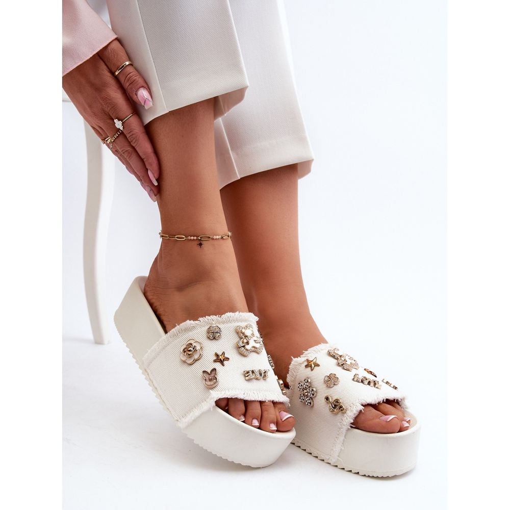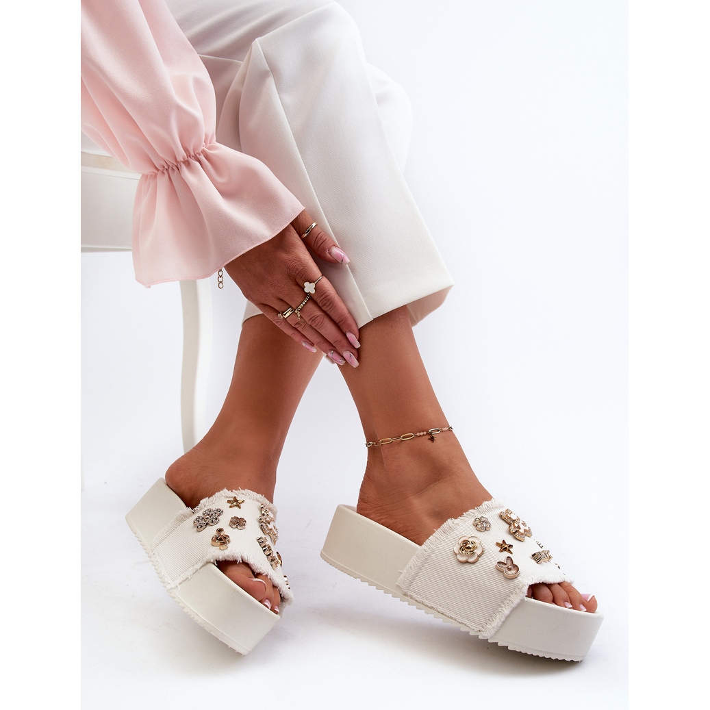 **Tongs à plateforme avec épingles pour femmes - Zranesia blanc**