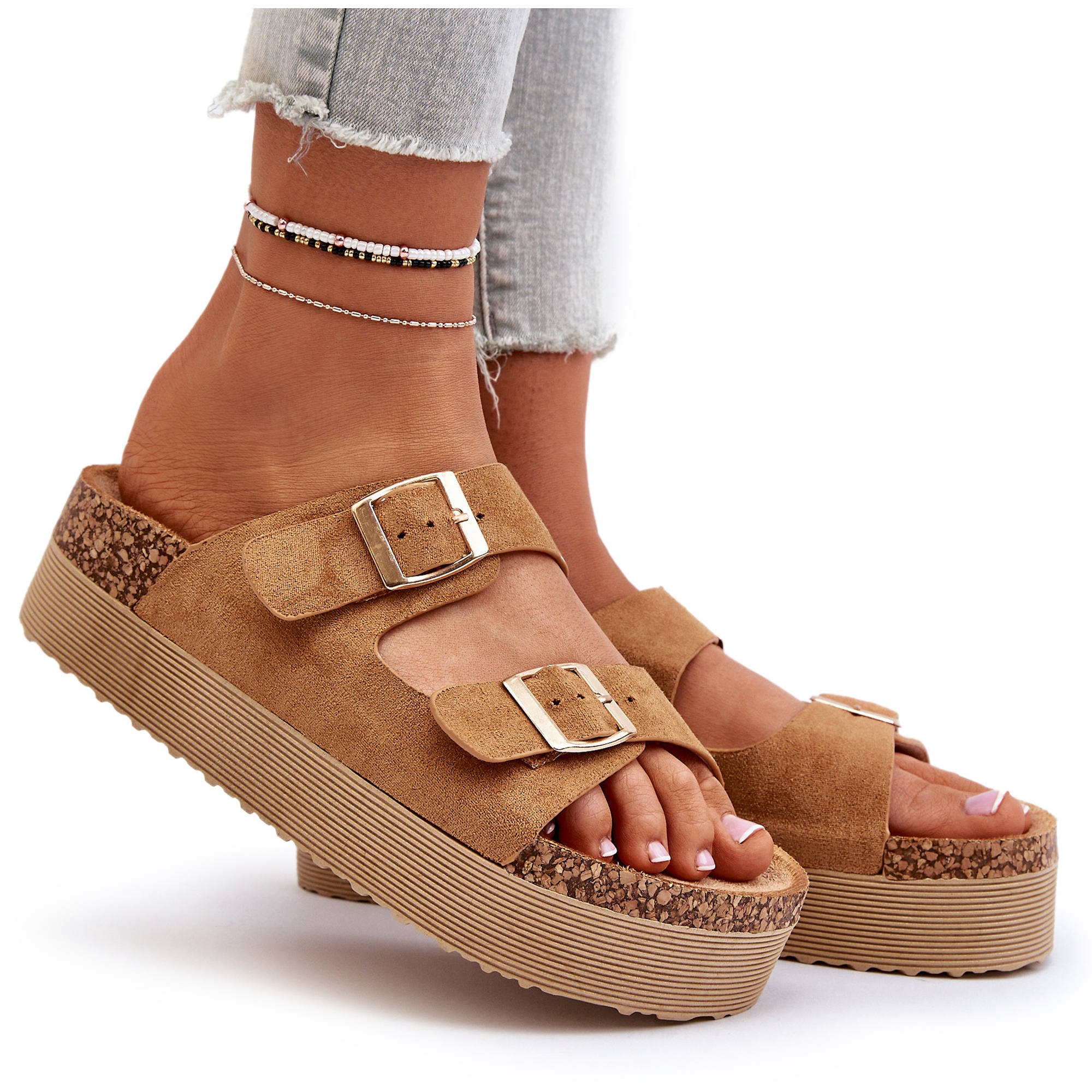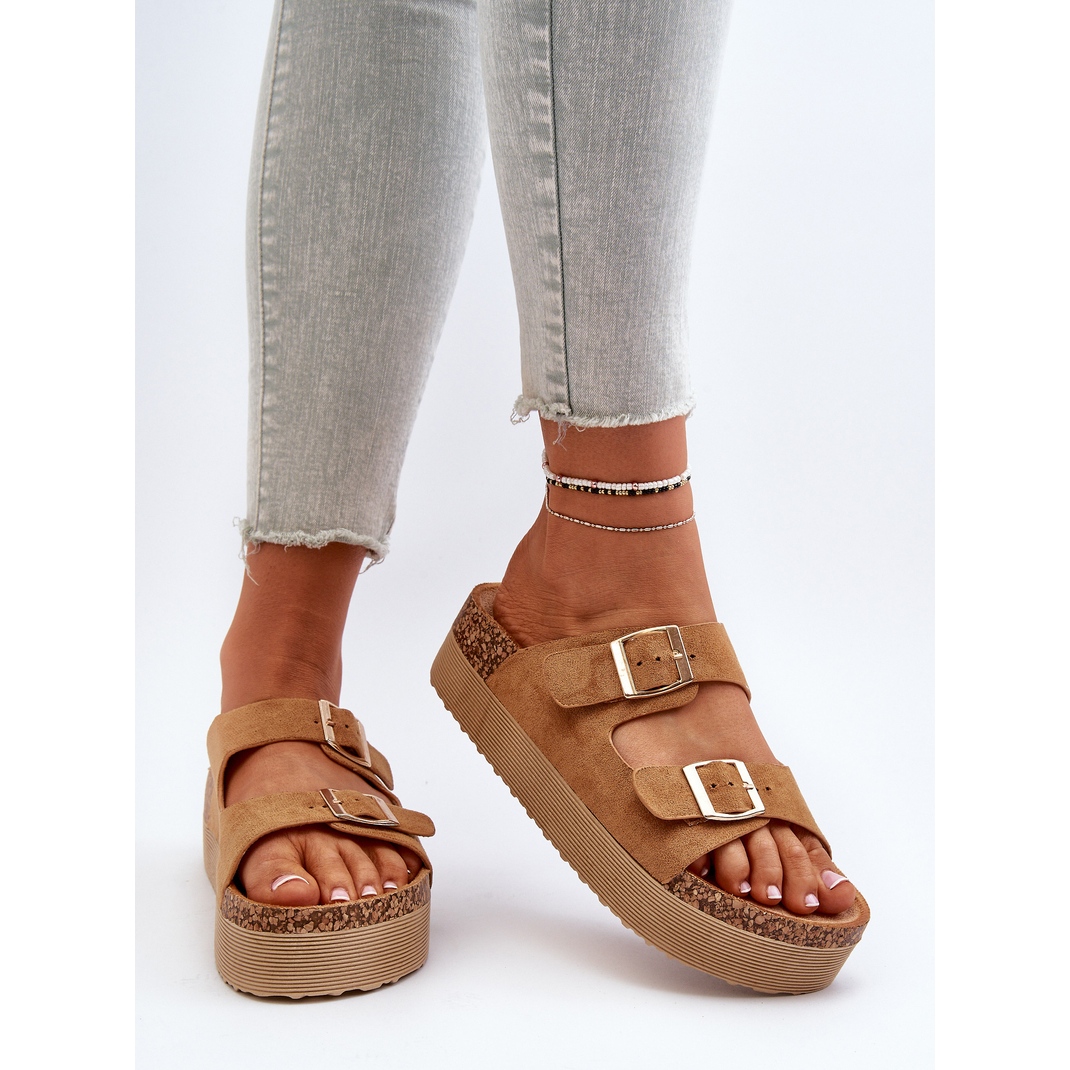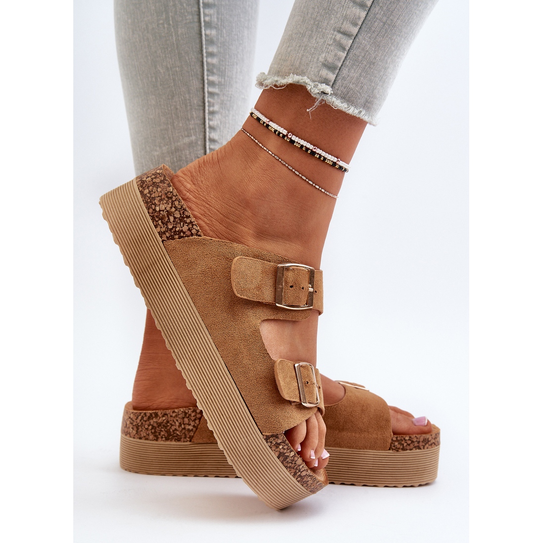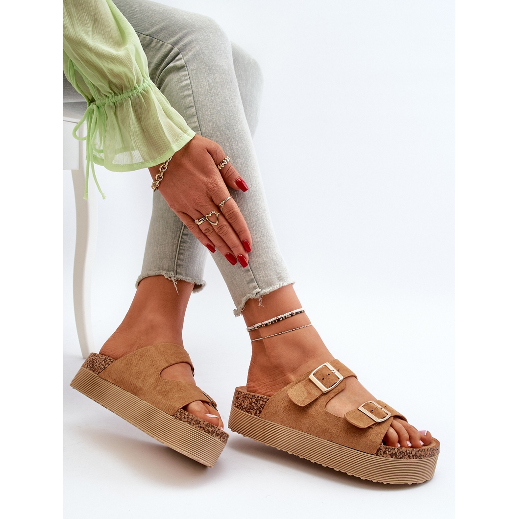 Inna marka Tongs à plateforme Camel Lolpey pour femmes avec boucles brun