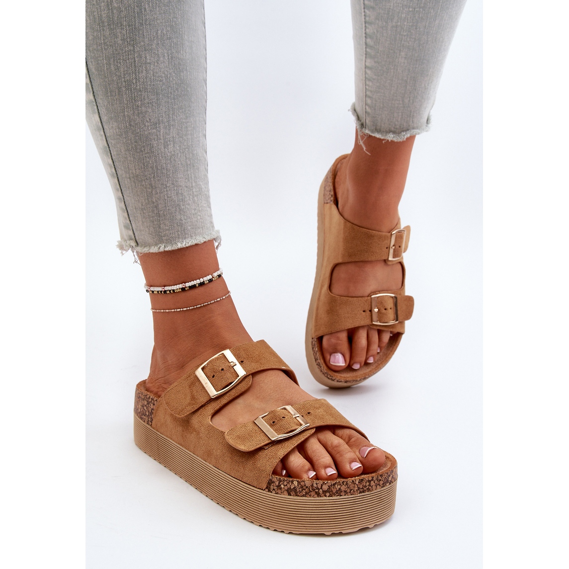 Détails: Tongs à plateforme Camel Lolpey pour femmes avec boucles brun
