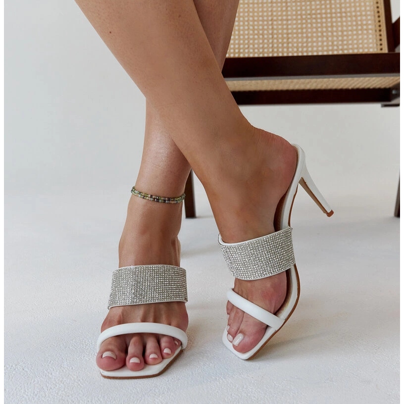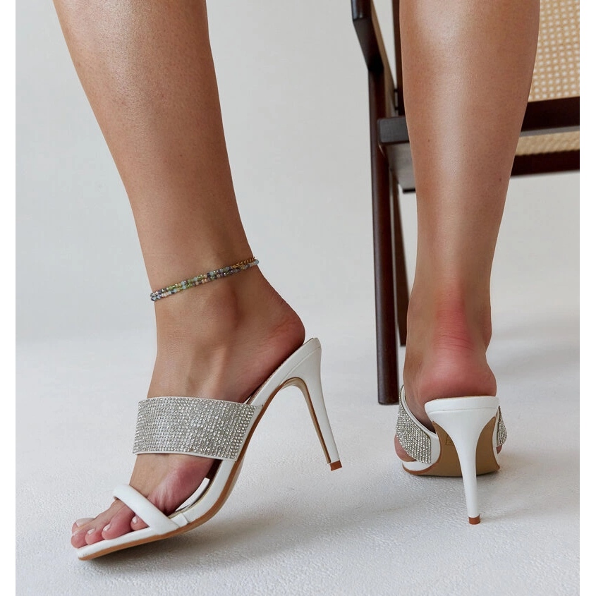 Inna marka Tongs à talons blanches ornées de zircons Adiam