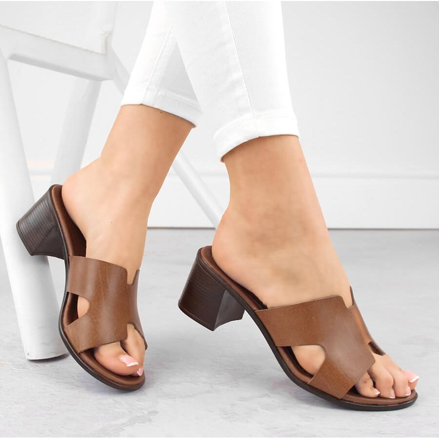 Détails: Tongs à talons hauts pour femmes en cuir marron Potocki 64300 brun