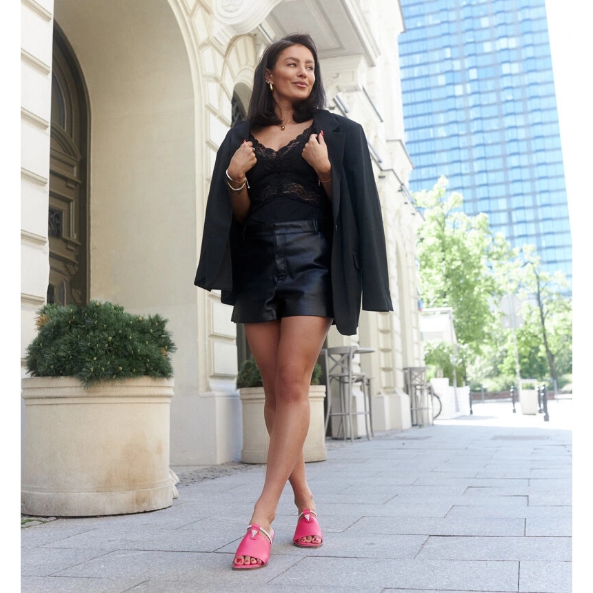Découvrez les tongs uniques avec une semelle intérieure en cuir antari dans une belle teinte rose de Fuchsia, qui correspondra parfaitement à vos stylisations d'été. Ces tongs classiques et modernes ont été enrichis de strass élégantes, qui leur donnent un personnage luxueux et rendent chaque moment passé en eux.