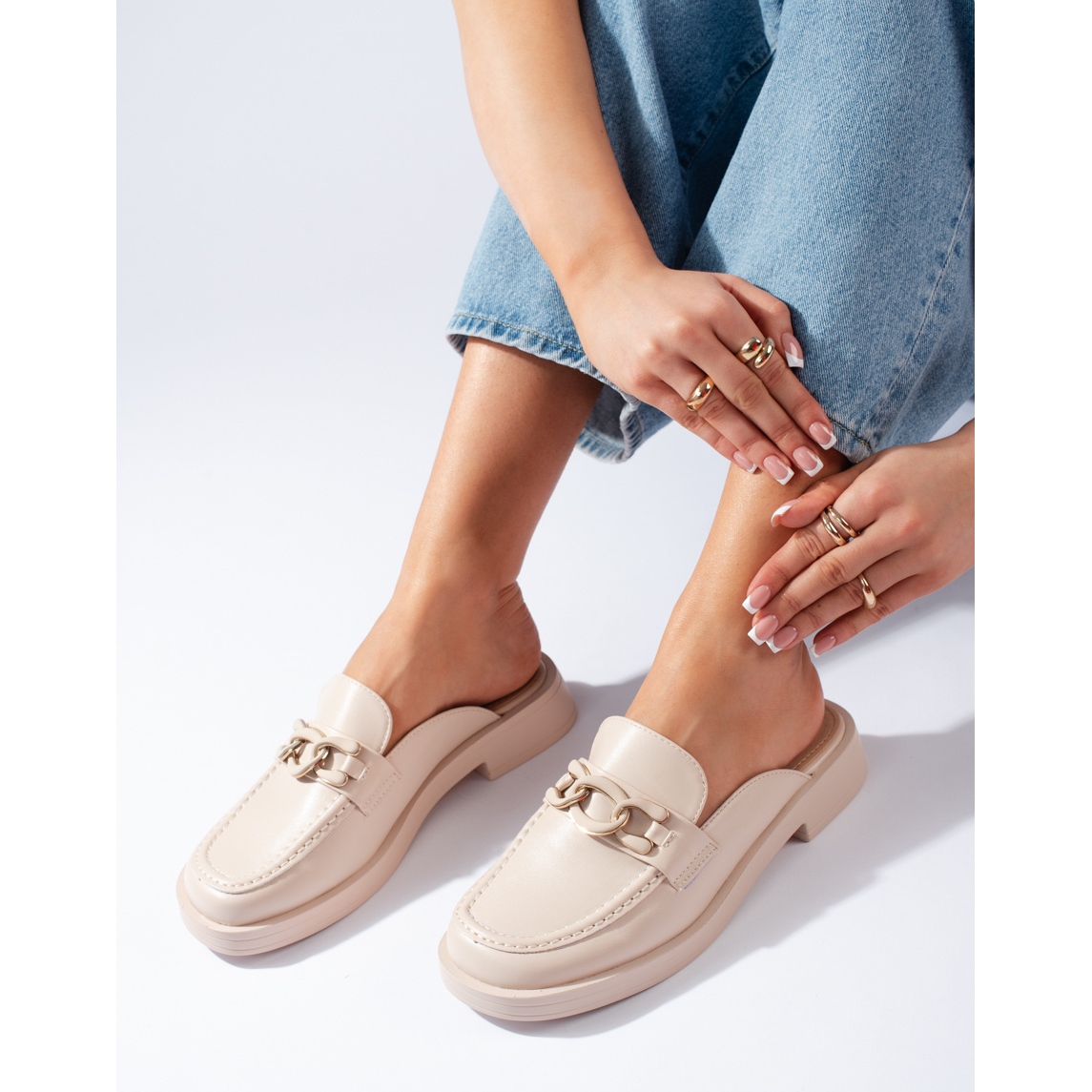 Le matériau extérieur et intérieur des tongs est 100 % simili cuir, ce qui les rend non seulement élégantes, mais également résistantes aux conditions météorologiques changeantes. Un atout supplémentaire de ce modèle est la chaîne, qui est un détail subtil mais significatif qui ajoute un caractère mode à l'ensemble.