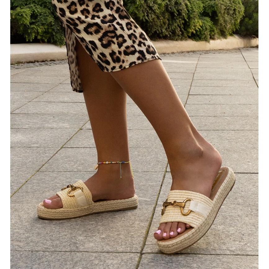 - Modèle: 5612 Tongs beiges avec une boucle dorée