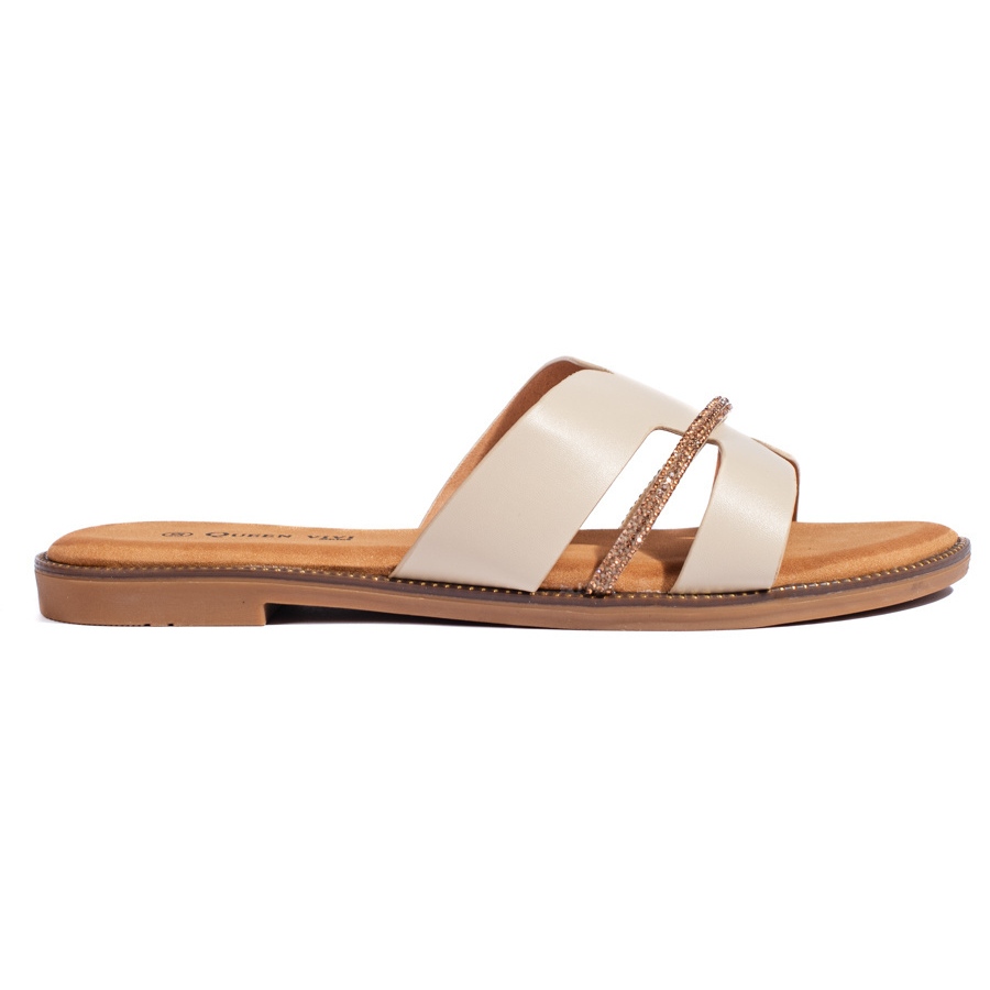 Fabriqués dans l'imitation de la peau de haute qualité, les tongs sont à la fois durables et faciles à prendre soin. Le talon ouvert et la structure insérée les rendent extrêmement pratiques et confortables à porter. Un avantage supplémentaire est des strass subtiles, qui leur donnent un caractère élégant et leur font un complément parfait aux stylisations décontractées et plus de sortie.