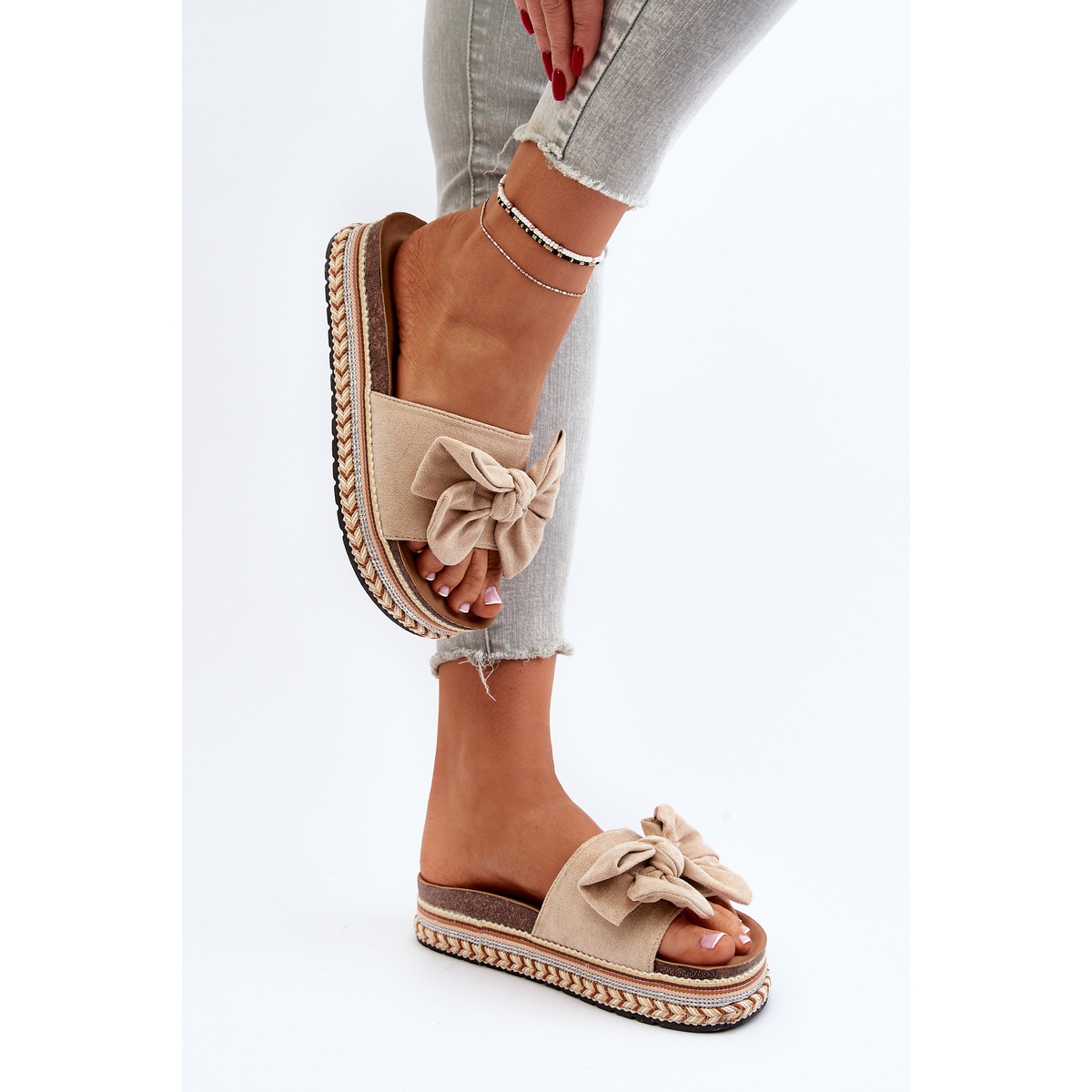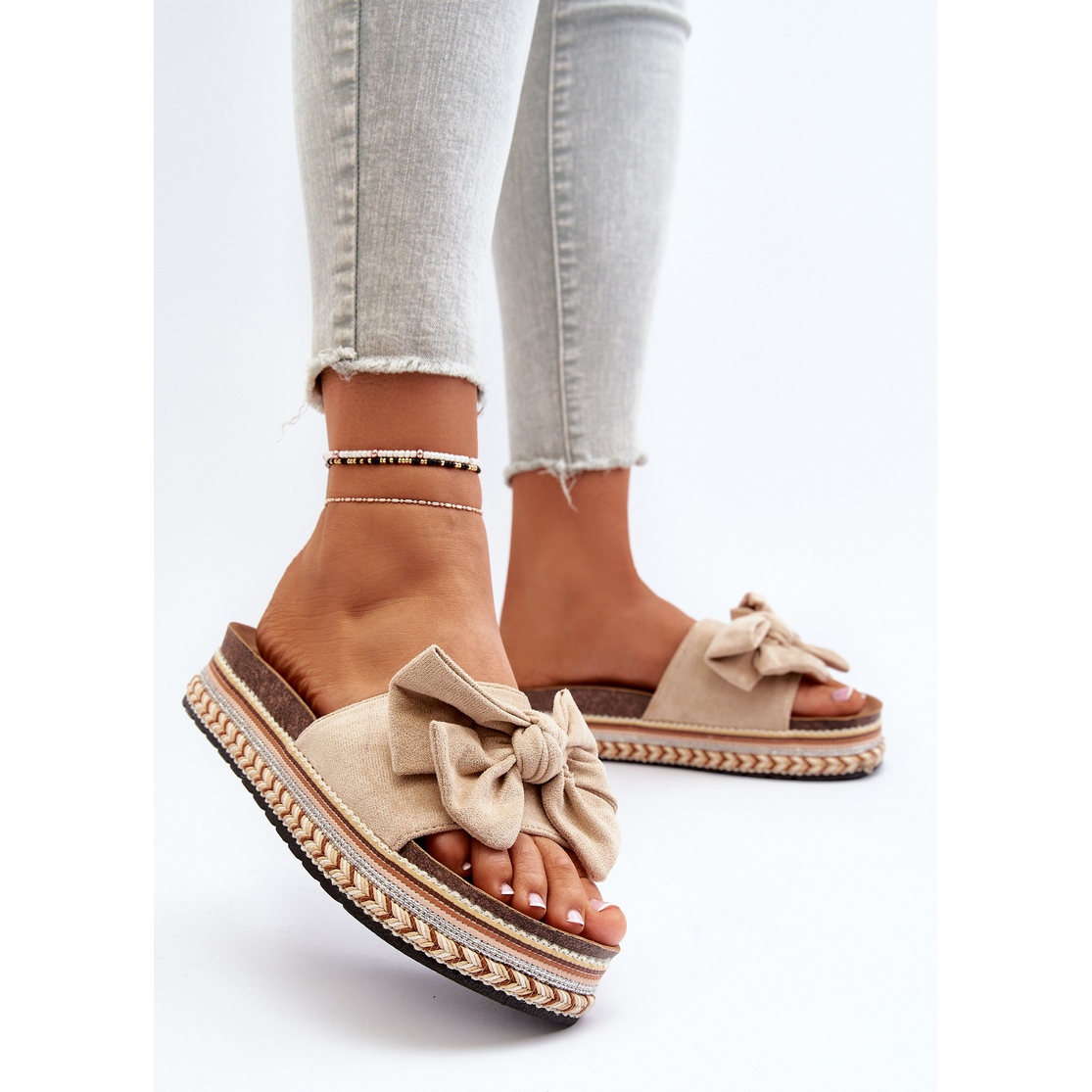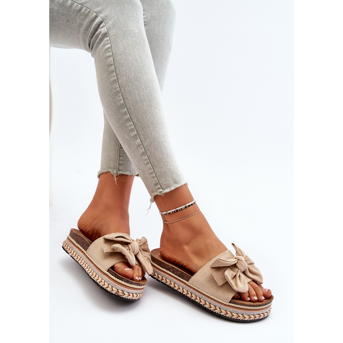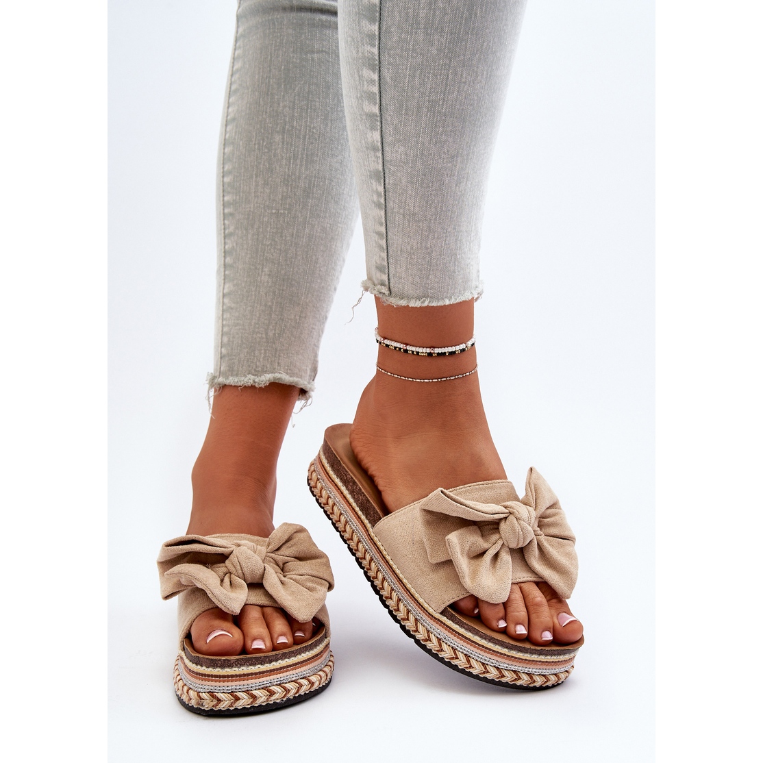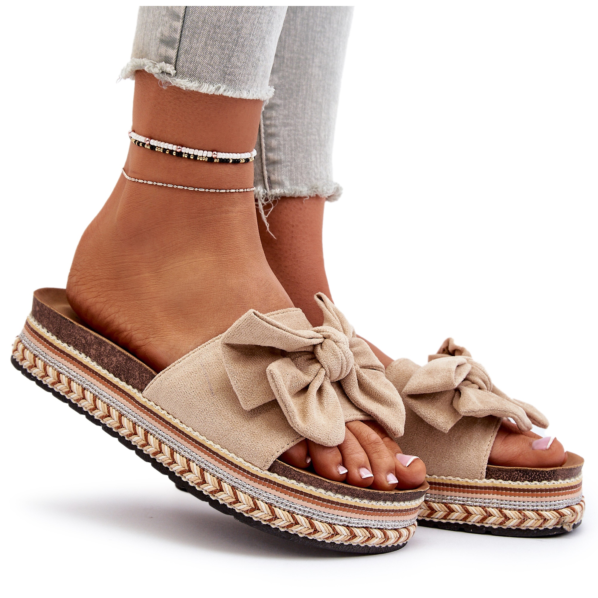 Détails: Tongs Beiges Pour Femmes Sur Une Plateforme Avec Un Noeud Evatria