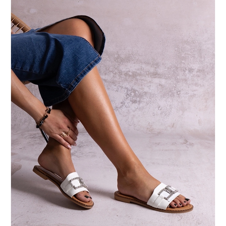 ** Les tongs blancs avec la boucle décorative de Rochael **
