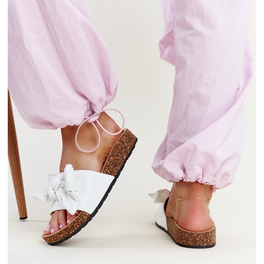 Détails: Tongs blanches avec semelle en liège et nœud Petresa