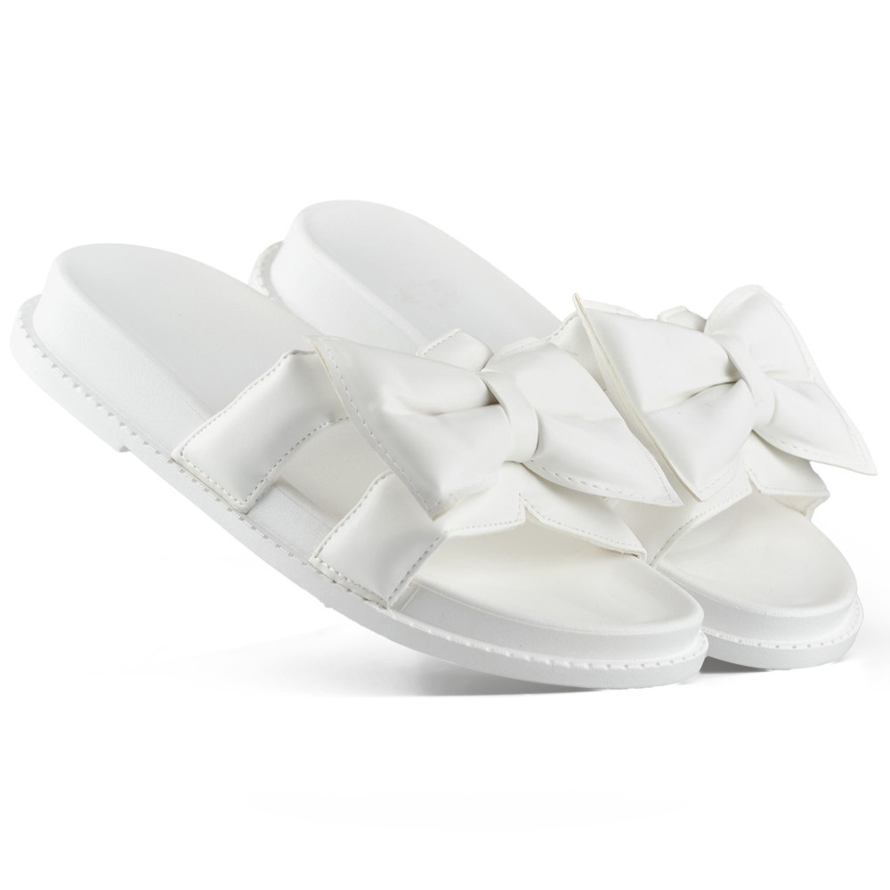 Commandez aujourd'hui et voyez à quel point les tongs des femmes blanches de joie avec un arc peuvent vous apporter!