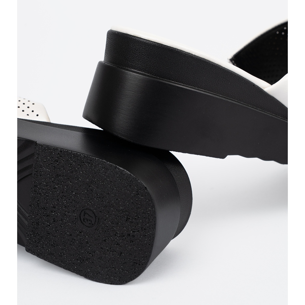La semelle en plastique pratique garantit une adhérence et un confort adéquats à porter, faisant de ces tongs un compagnon idéal à la fois sur une promenade et lors des réunions avec des amis. La combinaison classique de couleur blanche avec une semelle noire vous fait facilement les adapter à vos robes d'été préférées ou à des styles de jean décontractés.