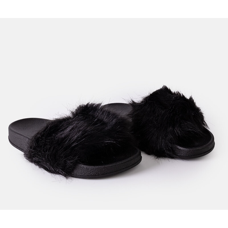 Tongs Candy noires avec fourrure