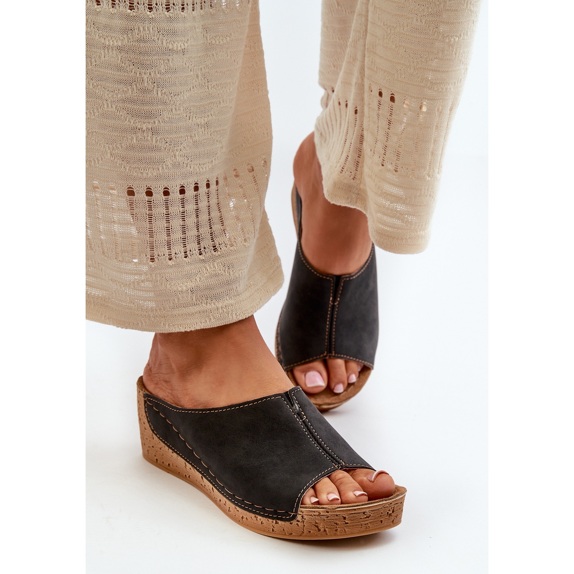 Situé sur un coin de 6 cm de haut, ils fournissent un soutien supplémentaire aux pieds, ce qui en fait un excellent choix au quotidien. Grâce à l'insert profilé de cuir en daim naturel, chaque étape devient plus stable et les pieds sont correctement soutenus.