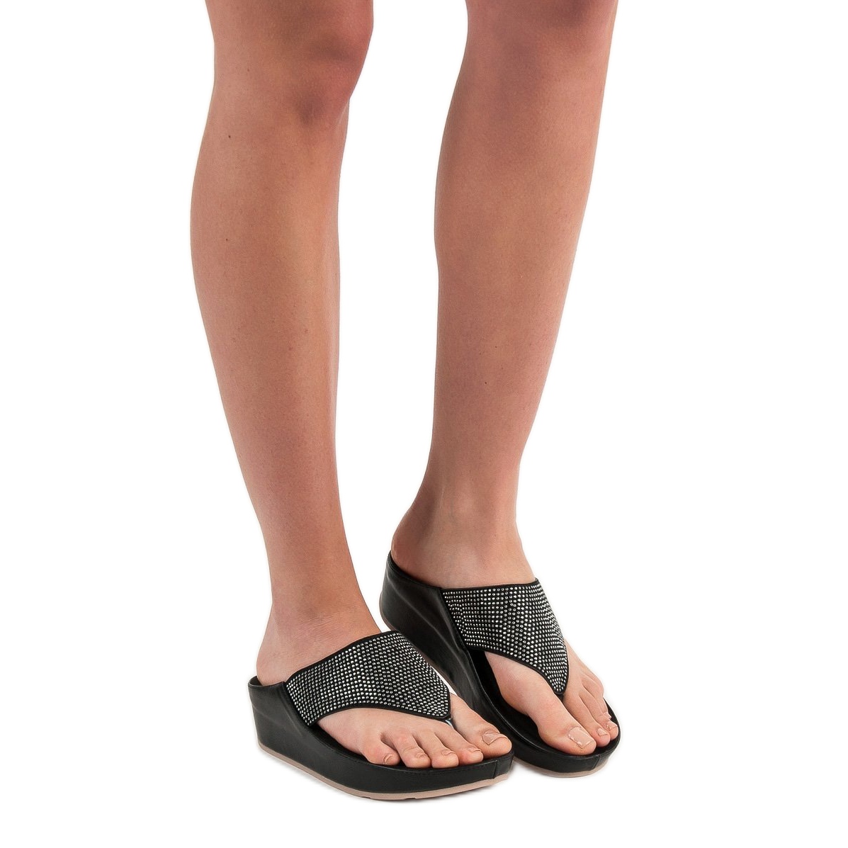 Découvrez l'élégance et le confort de l'été avec les tongs compensées de Kylie dans une couleur noire classique. Ces chaussures uniques sont le choix parfait pour les femmes qui apprécient le style et le confort. Fabriqués dans un matériau semblable au cuir de haute qualité, ils garantissent durabilité et apparence attrayante. L'insert en cuir écologique garantit un confort de port même pendant les longues journées d'été.