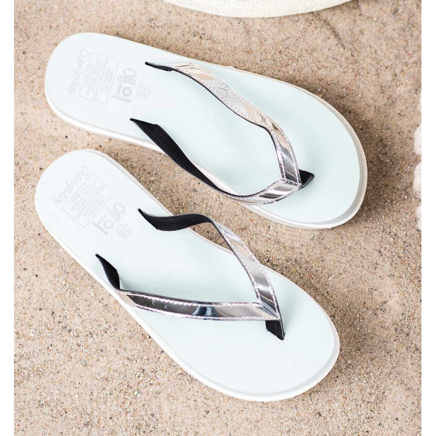 Grâce à l'insert en caoutchouc et à la tige composée de deux bandes argentées, ces chaussures allient confort et look tendance. Parfaites pour les sorties quotidiennes, disponibles dans la collection KeeShoes, elles enrichiront presque certainement votre garde-robe estivale.