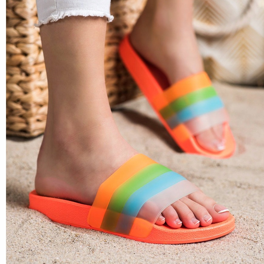 Nous vous présentons les tongs Bona avec des rayures colorées en orange intense - parfaites pour les journées de printemps et d'été ! Ces tongs décontractées sont un choix parfait pour toutes les femmes à la recherche de confort et de style au quotidien.