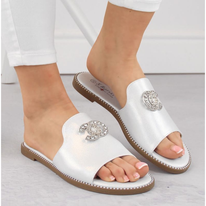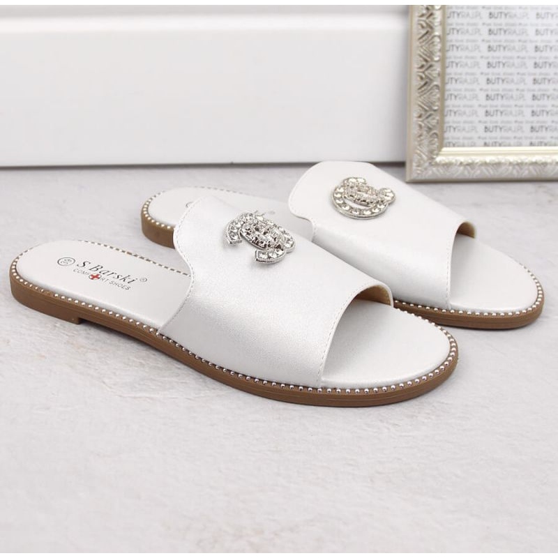 Détails: Tongs confortables avec zircons S.Barski W OLI258B blanc blanche