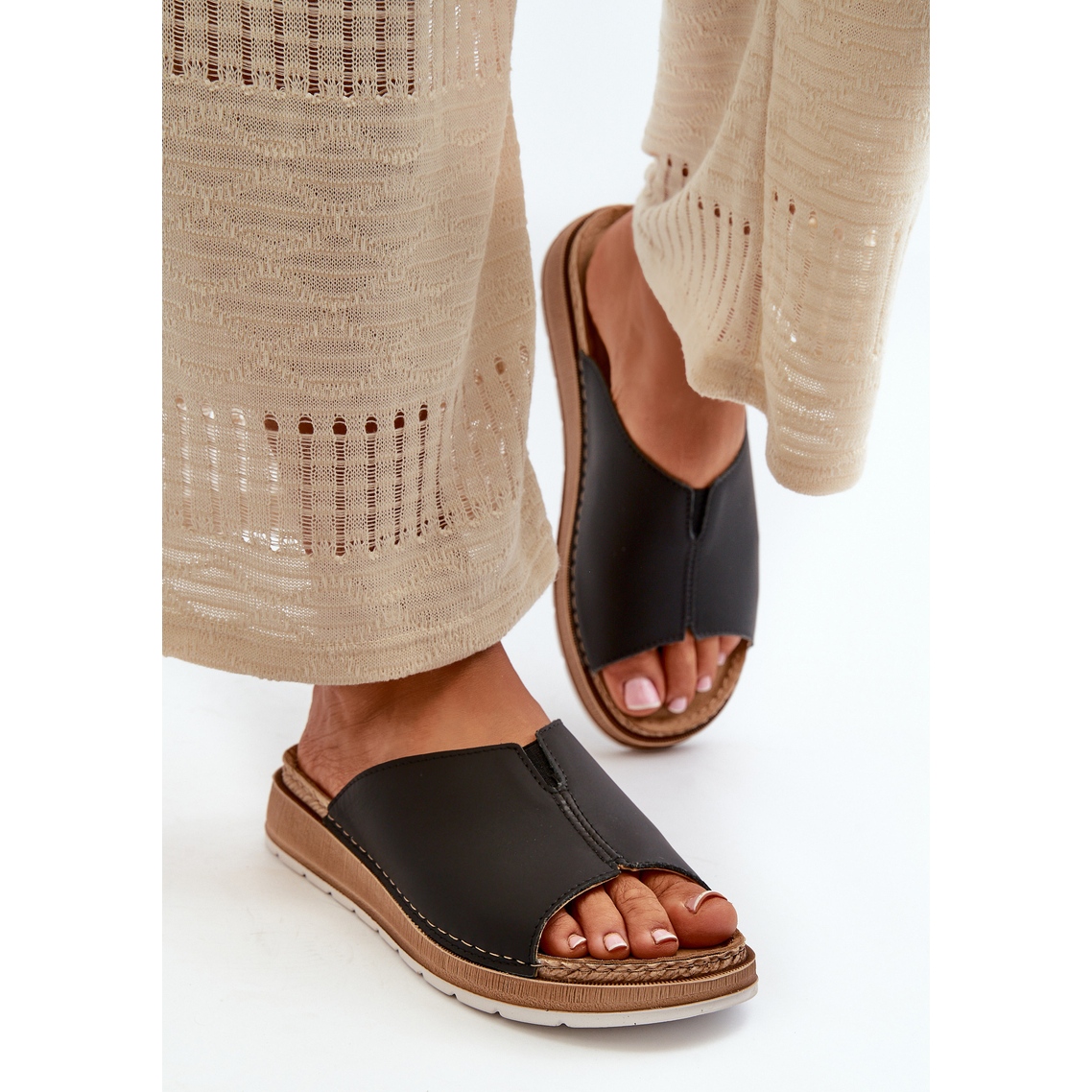Les pantoufles en cuir confortables pour femmes GS0003I1 en noir sont une proposition idéale pour les femmes qui apprécient le confort et l'apparence à la mode. Fabriquées en matériaux de haute qualité, ces tongs combinent l'élégance et la fonctionnalité. L'insert profilé de cuir doux et naturel s'adapte à la forme anatomique du pied, garantissant un confort extraordinaire de porter à la fois dans les stylisations de tous les jours et pendant les promenades.