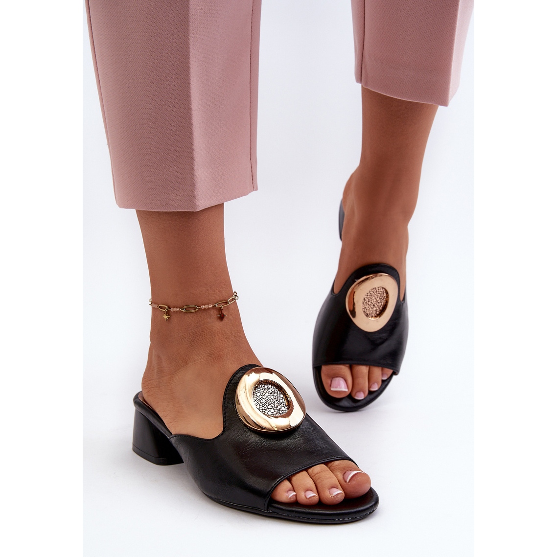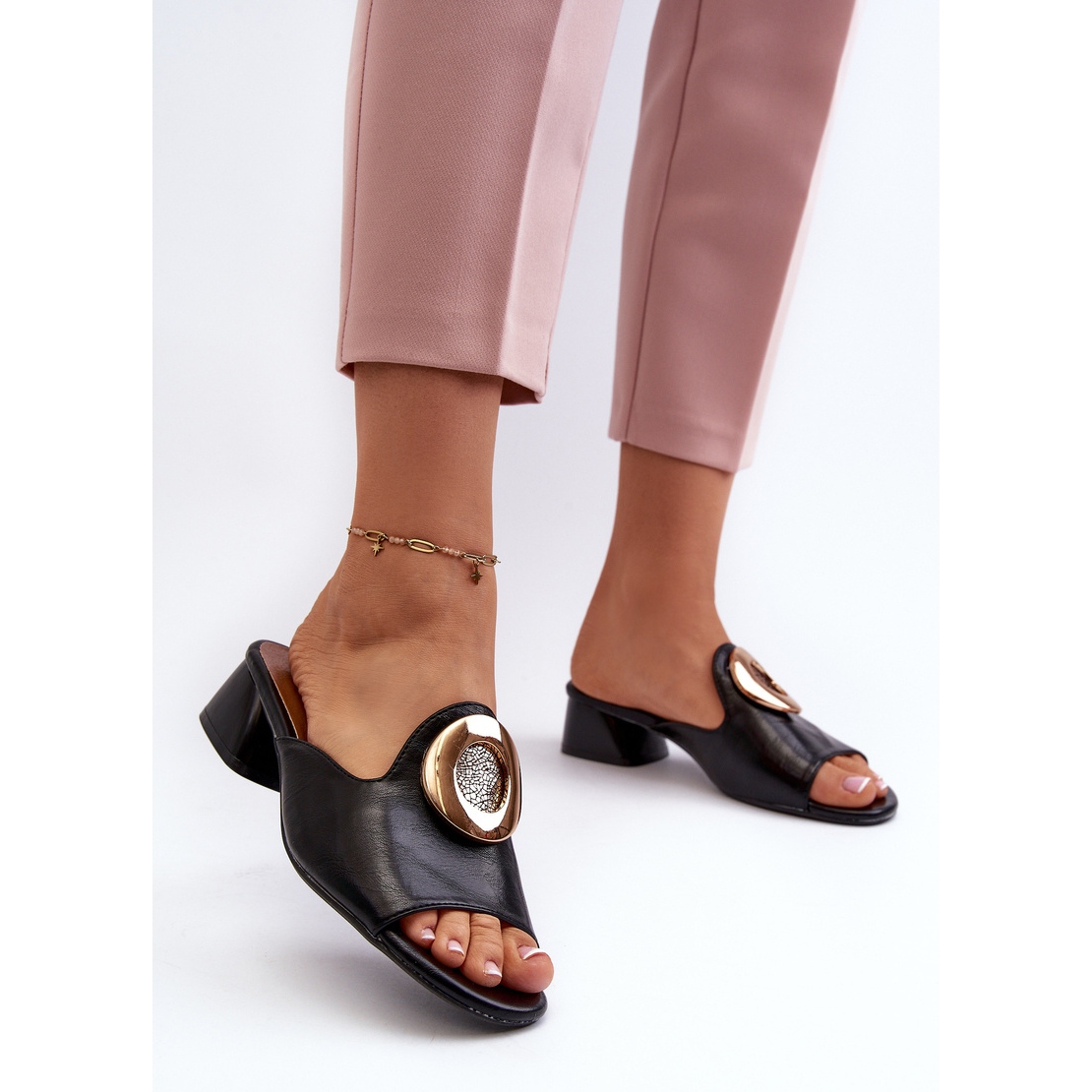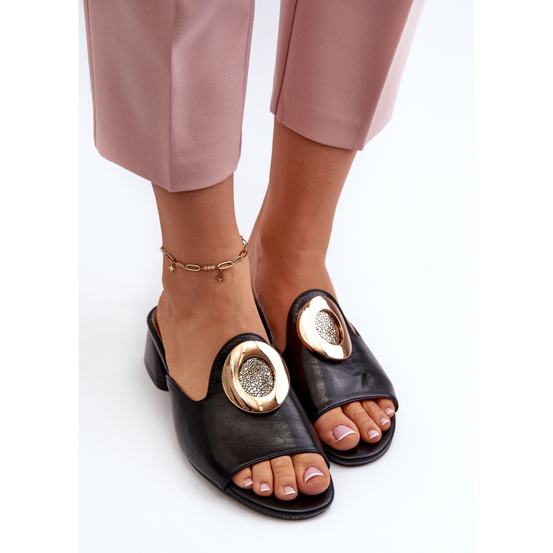 Détails: Tongs élégantes à talons bas pour femmes avec décoration dorée noir Uzimila le noir