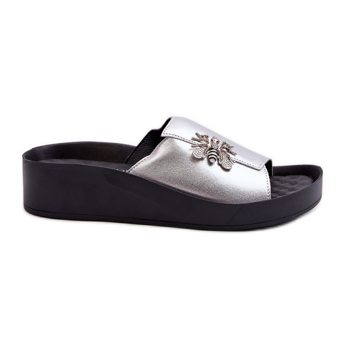 S.Barski Tongs élégantes pour femmes avec décoration, cuir naturel S.Barski KV27-015 Argent