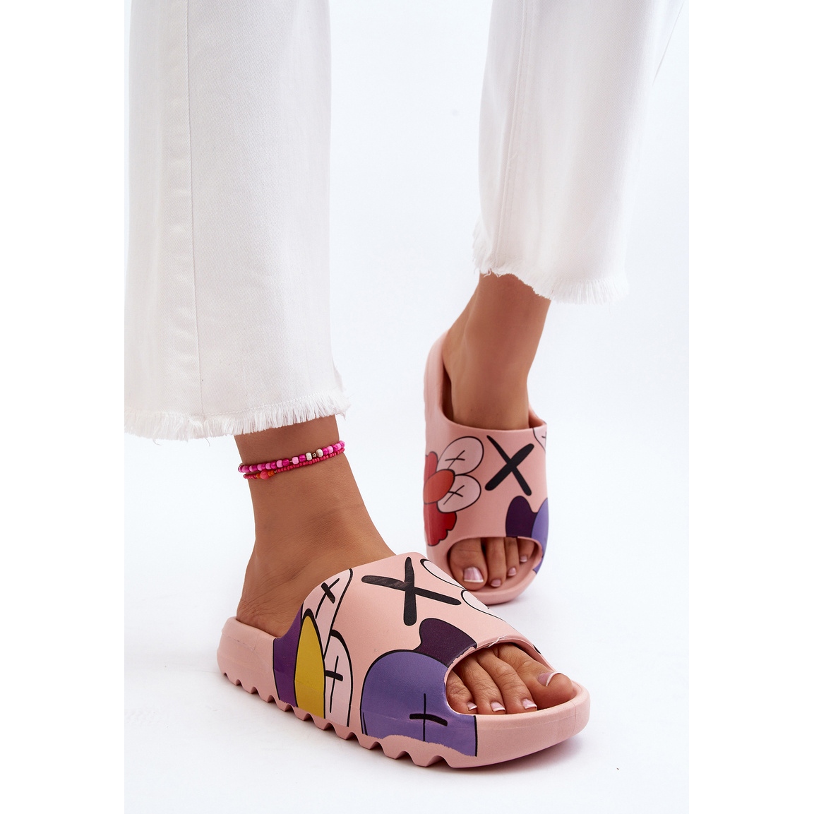 Détails: Tongs en caoutchouc à imprimé monstres roses