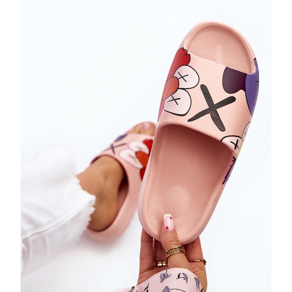 Ce qui distingue le plus ces tongs, c'est leur couleur rose énergique et leur imprimé original avec des motifs de dessins animés, qui leur donnent du caractère et les font ne pas passer inaperçues. Ce sont des chaussures destinées aux femmes qui apprécient l'originalité et souhaitent mettre en valeur leur individualité dans les vêtements de tous les jours.