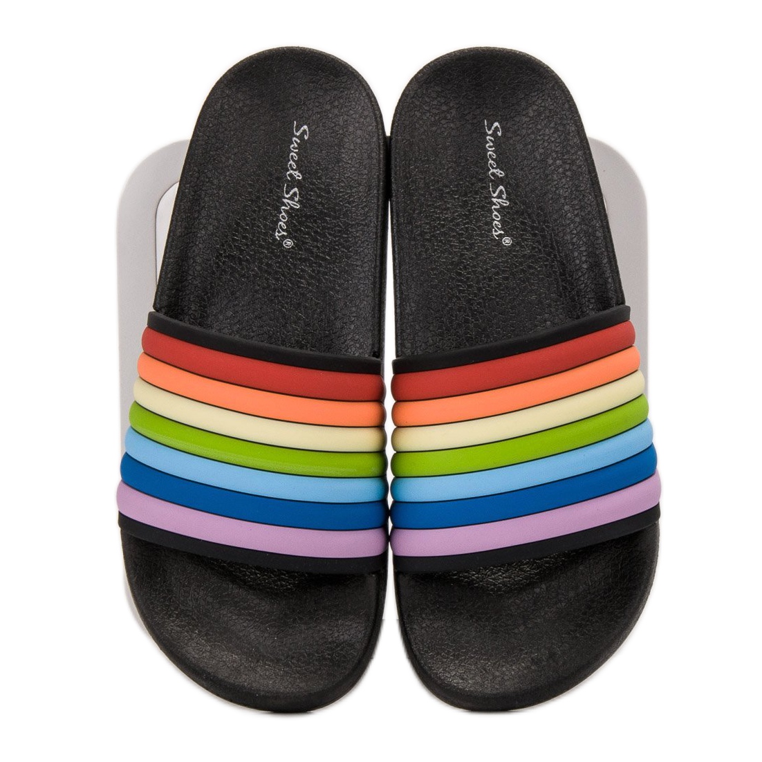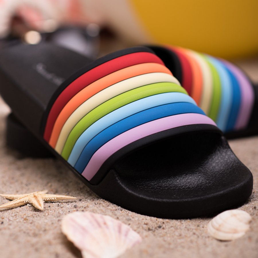 Les tongs Sweet Shoes sont disponibles en noir avec des accents multicolores, et leur hauteur maximale est de 2 cm, ce qui les rend extrêmement confortables à porter. Chaque paire est emballée dans une élégante boîte, ce qui en fait une excellente idée cadeau.