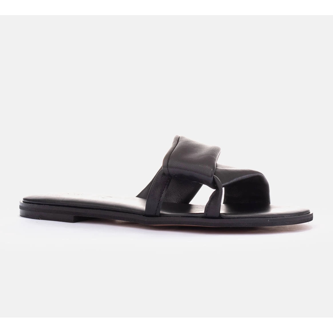 Marco Shoes Marco Shoes Tongs en cuir à fond plat le noir