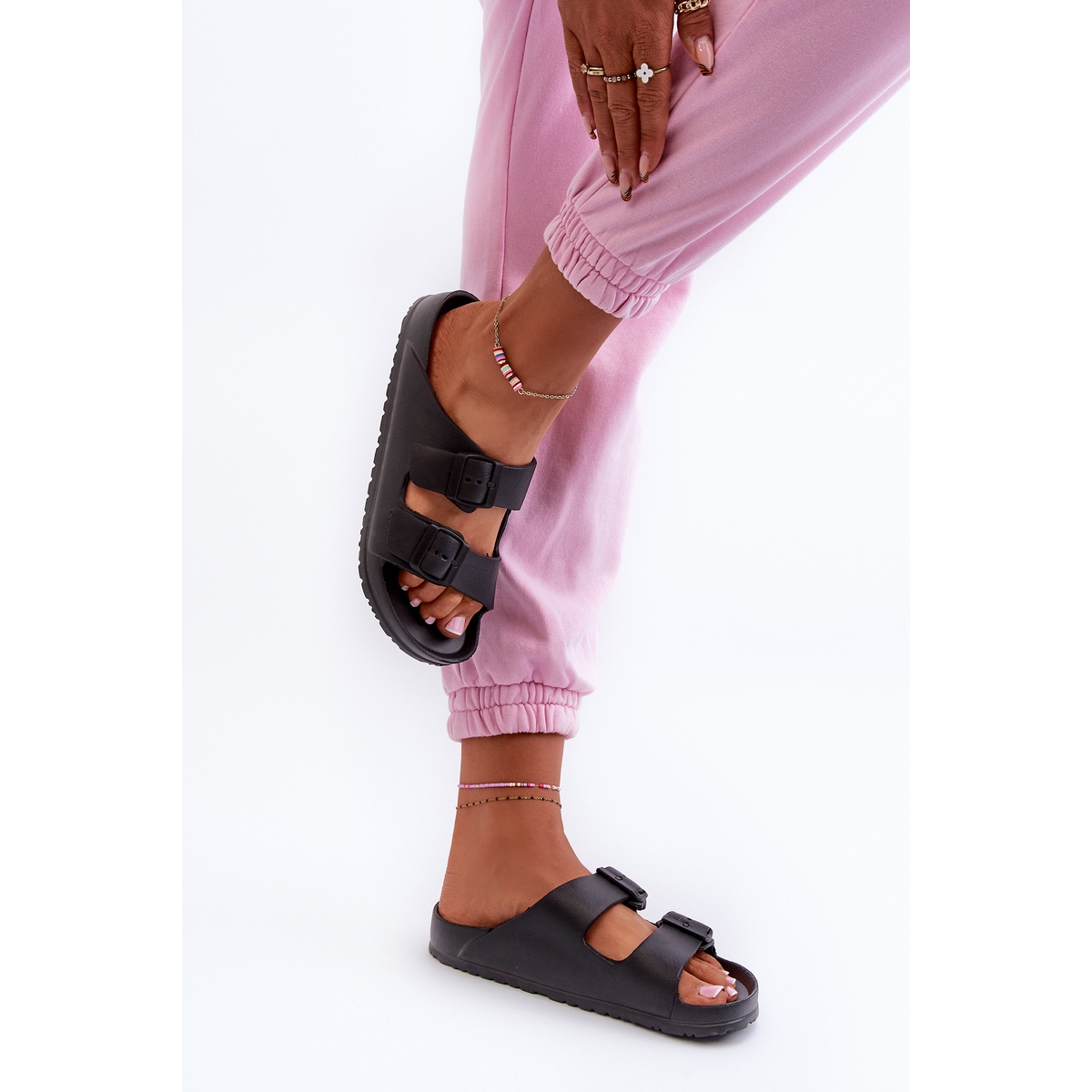 Vous recherchez des chaussures confortables et élégantes pour les journées d'été ? Les tongs en mousse pour femmes avec boucles, noires, sont un choix parfait pour toutes les femmes qui apprécient le confort et le design universel. Fabriquées à partir d'un matériau en mousse légère, ces tongs offrent un confort incroyable et sont parfaites à porter toute la journée, que vous passiez du temps à la plage, au bord de la piscine ou que vous vous promeniez en ville.