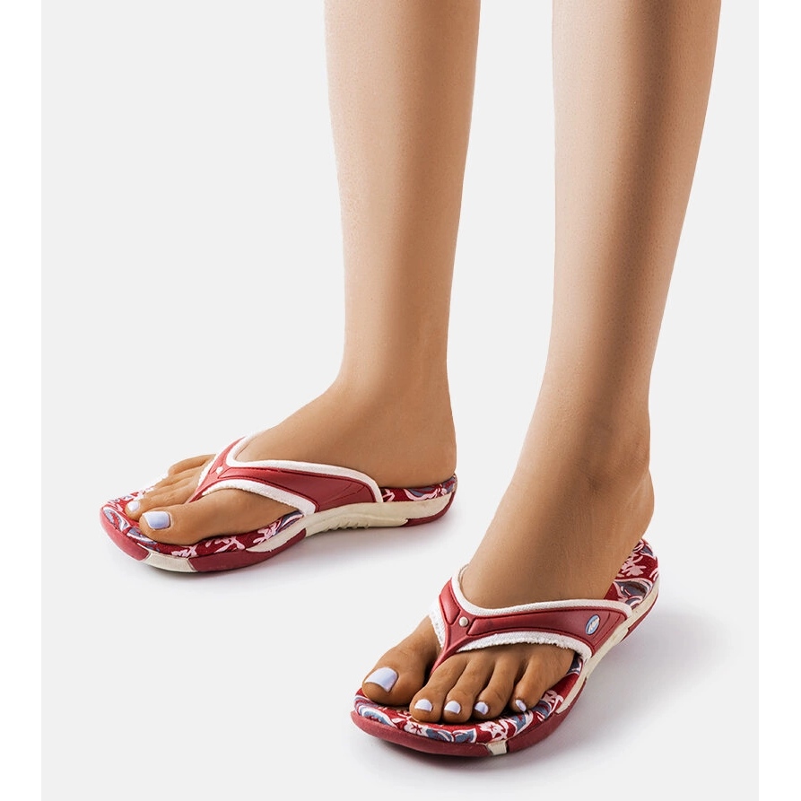 Proposition légère et féminine pour l'été - Flip rouge de Feliks avec un motif floral. La coupe classique de slip-on tongs avec un nez arrondi sera parfaite pour la plage, une promenade dans la ville ou des stylifications d'été quotidiennes. Le motif floral blanc subtil sur fond rouge ajoute de la fraîcheur et du charme.