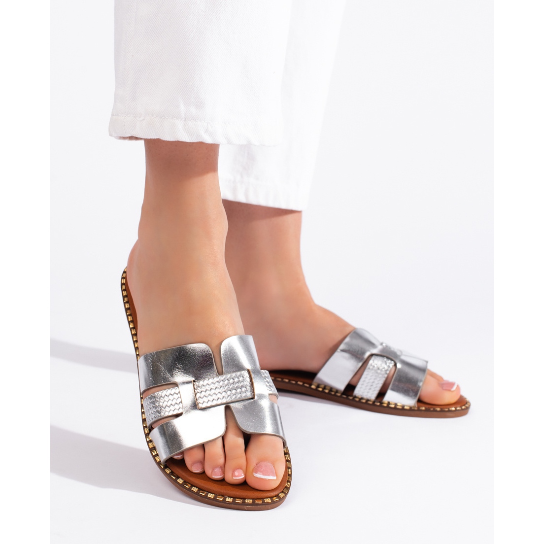 Le style classique unique signifie que ces tongs peuvent être portés tous les jours, à la maison et pendant les promenades ou les réunions avec des amis. Quelle que soit l'occasion, ces pantoufles de femmes argentées seront un complément parfait à votre garde-robe d'été.