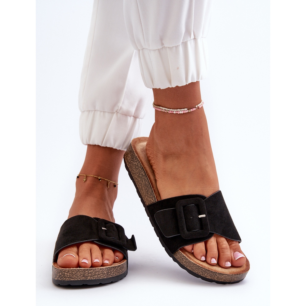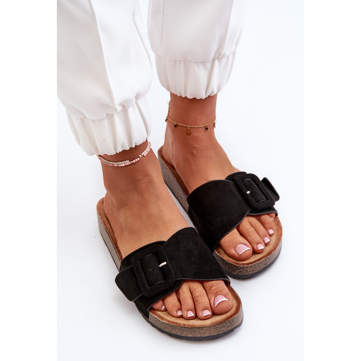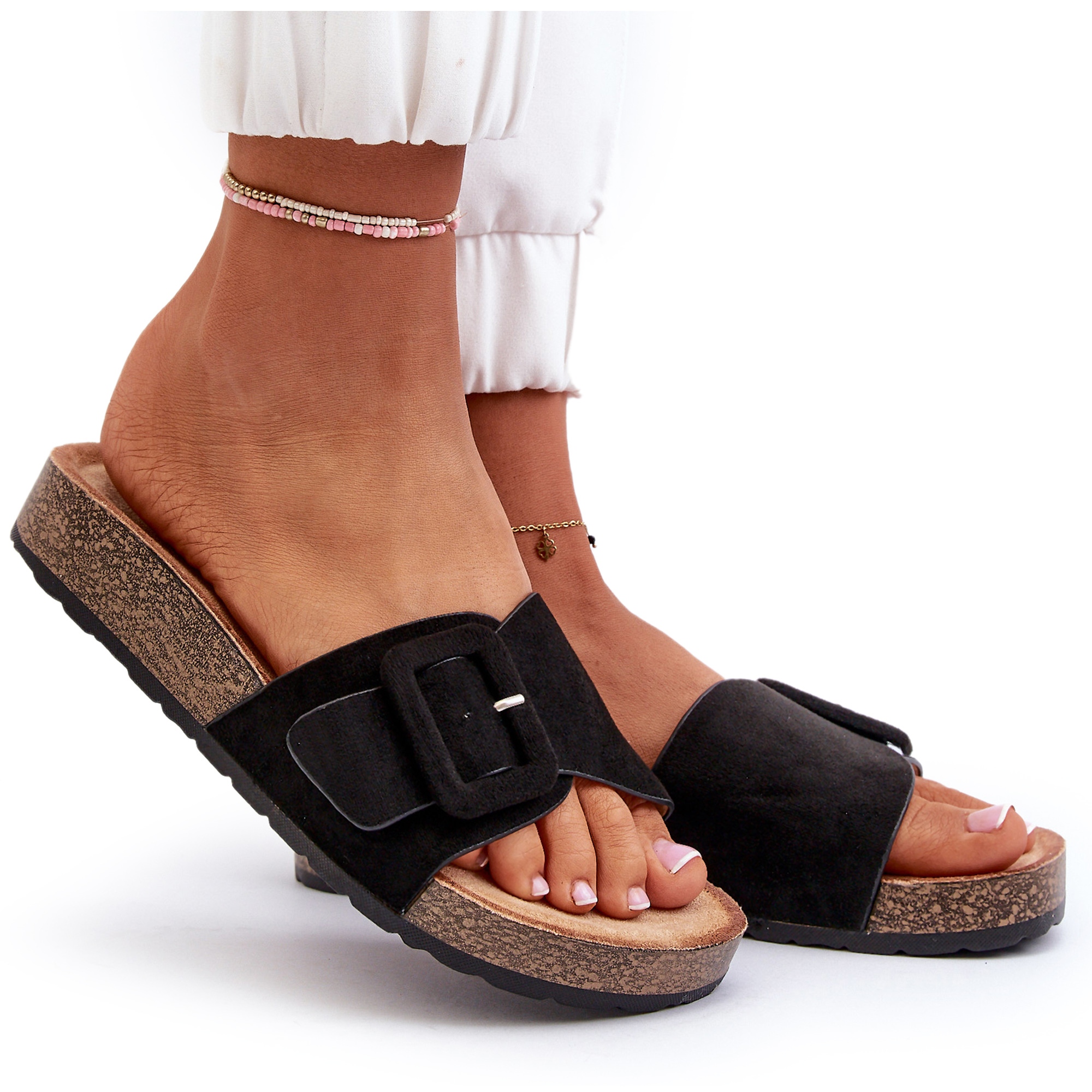 Tongs pour Femmes avec Boucle Eco Daim Noir Laeltia est le choix parfait pour toutes les femmes à la recherche de confort et de style pour les journées d'été. Fabriqués en daim écologique de haute qualité, ils allient design tendance et praticité. La couleur noire classique les rend assortis à de nombreux styles d'été, et la ceinture avec boucle leur donne un caractère unique.