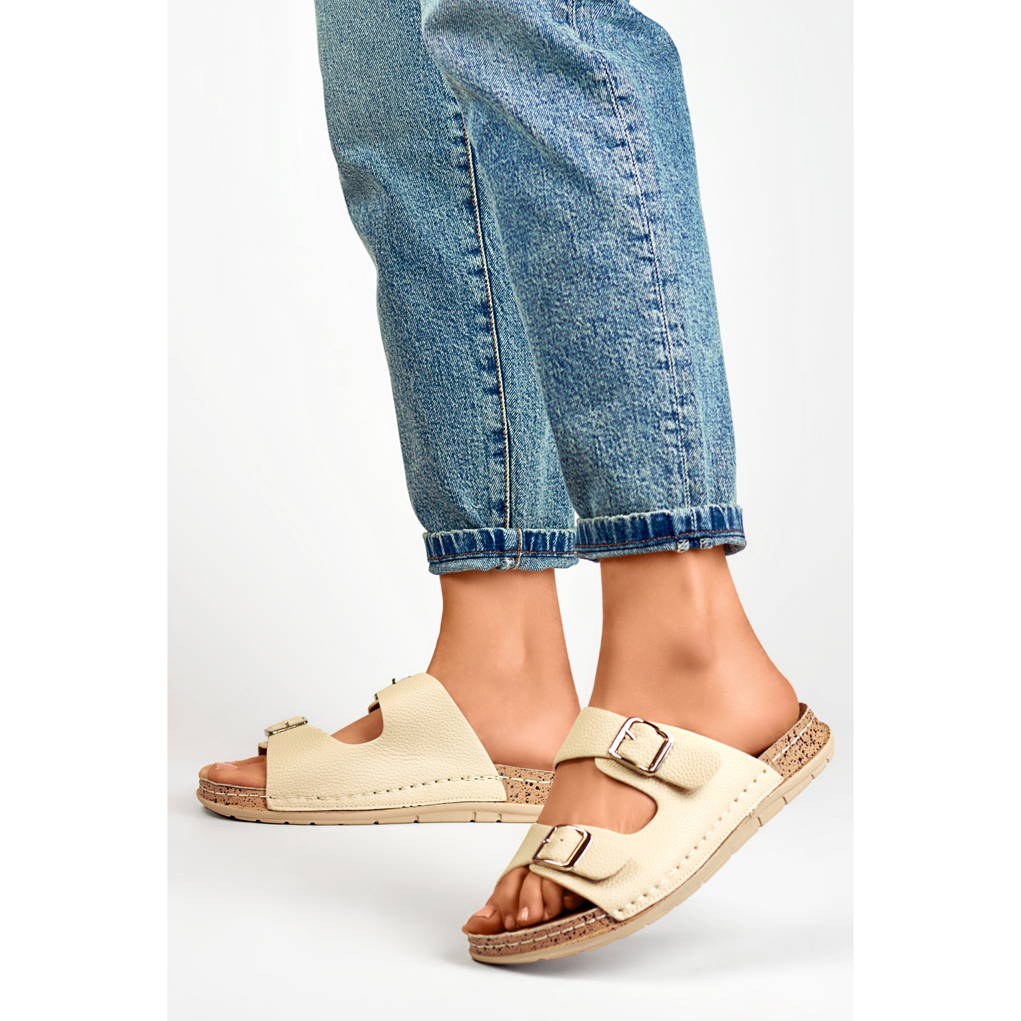 Détails: Tongs femme beiges confortables avec deux boucles et une semelle intérieure en cuir