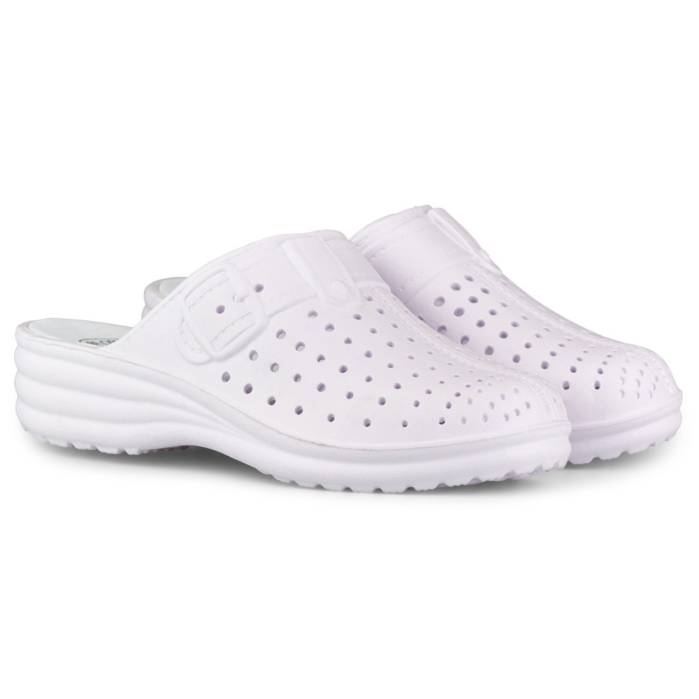 Le produit que nous décrivons sont des tongs blanches confortables pour femmes. Ce sont des chaussures de la marque Inna, représentant la mode décontractée au quotidien. Ils sont fabriqués en plastique et disposent d'une plateforme de 4 cm de hauteur, ce qui les rend stables et confortables pour marcher. Les rabats sont à enfiler, ce qui les rend faciles à enfiler. Ils conviennent aux saisons de printemps et d’été.
