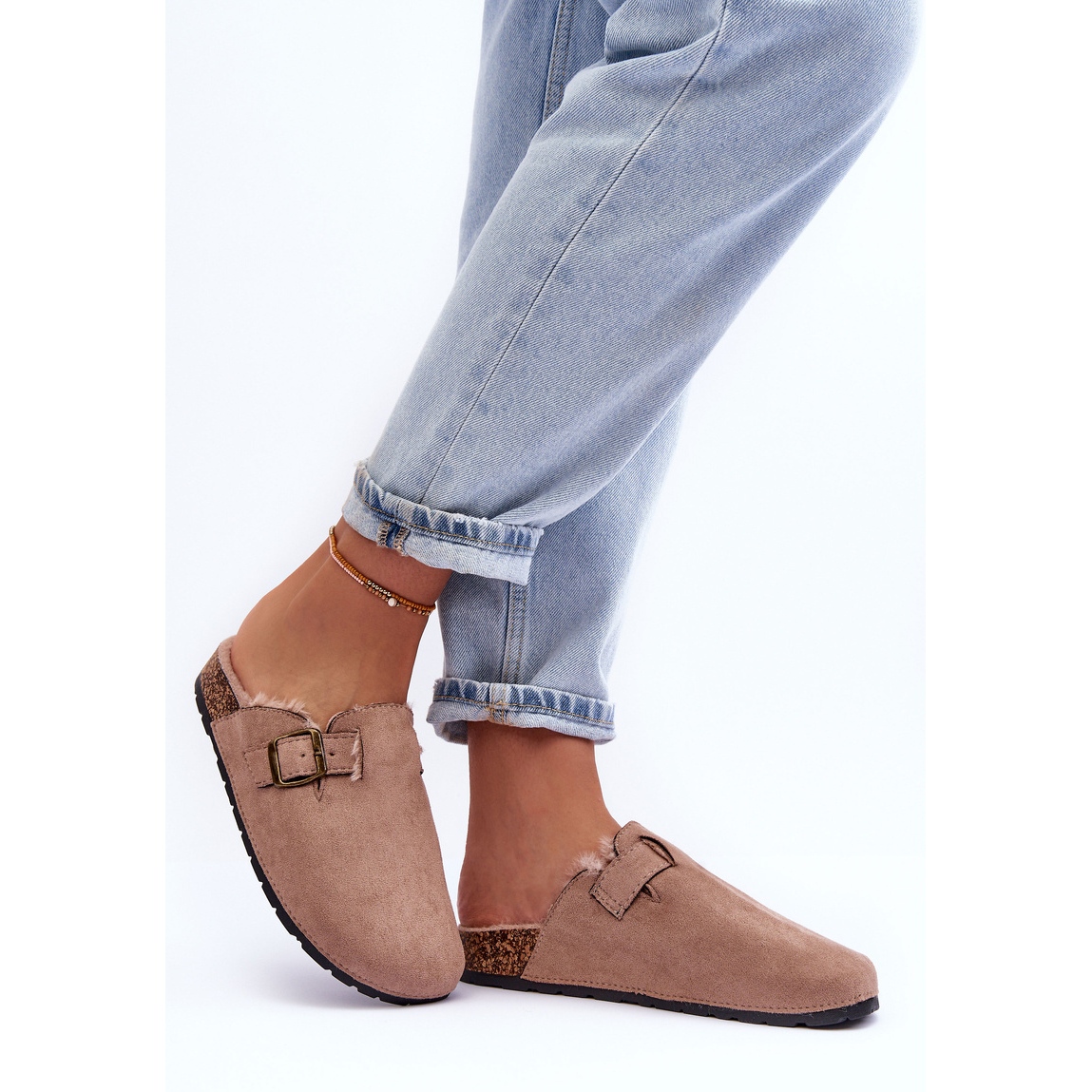 Détails: Tongs Femme En Daim Avec Fourrure Beige Haidamia