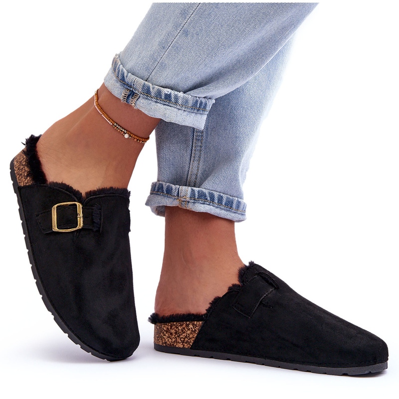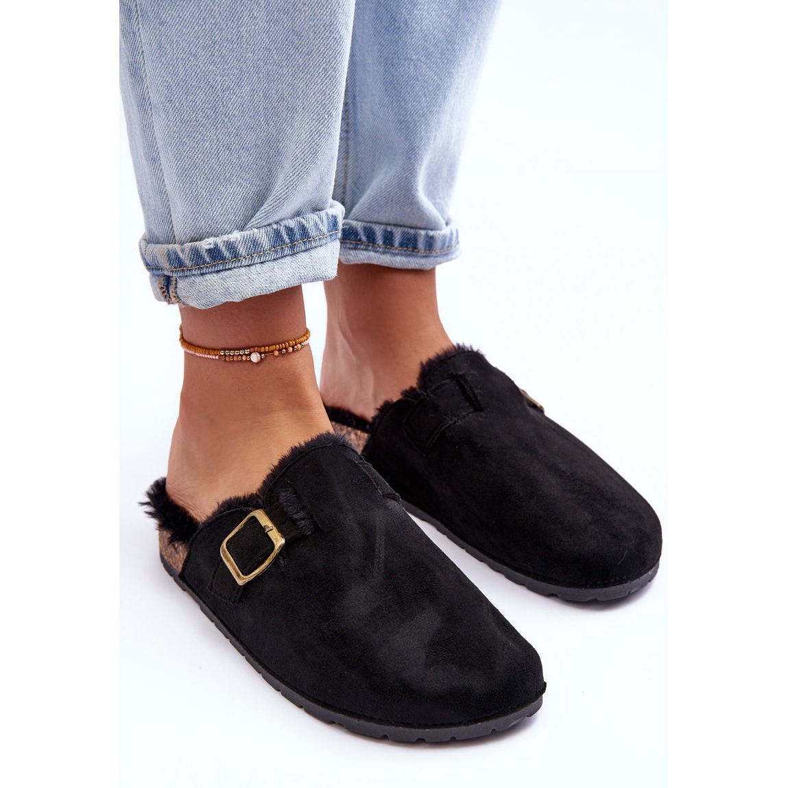 FB2 FB2 Tongs Femme En Daim Avec Fourrure Noir Haidamia le noir