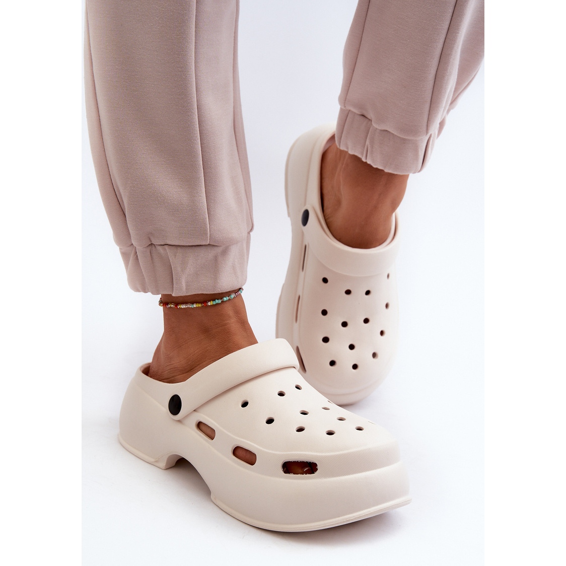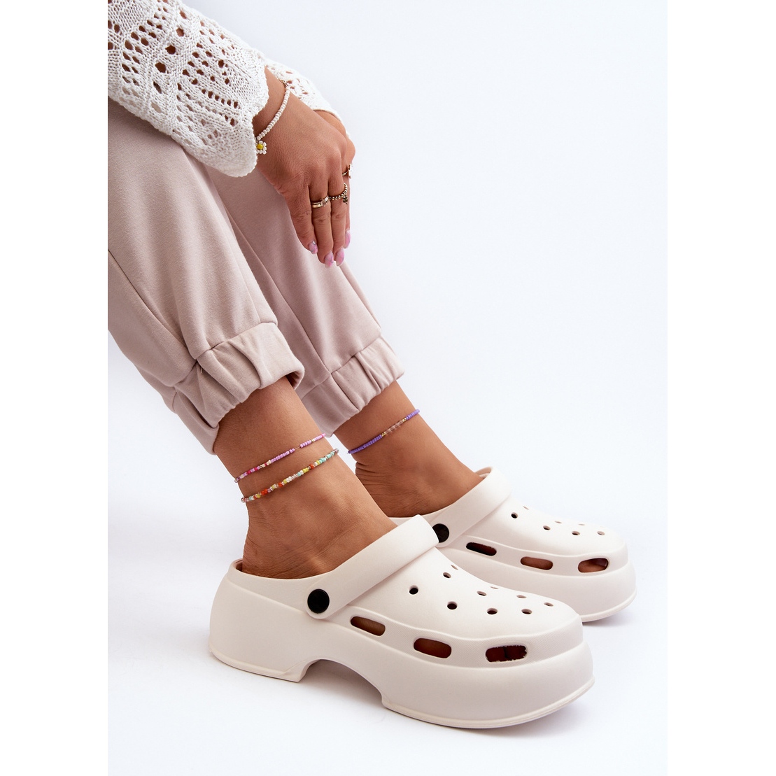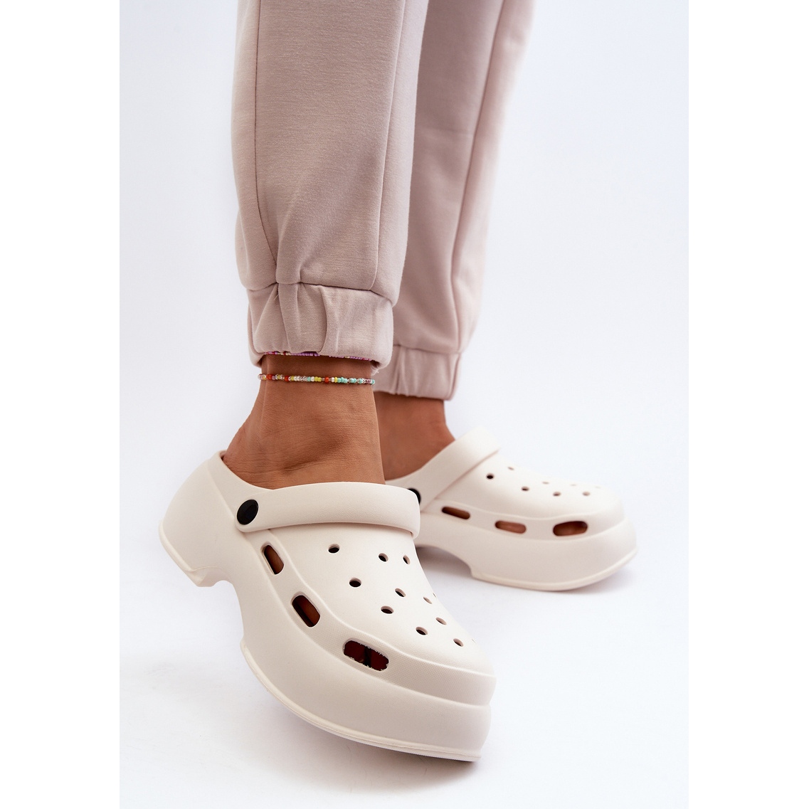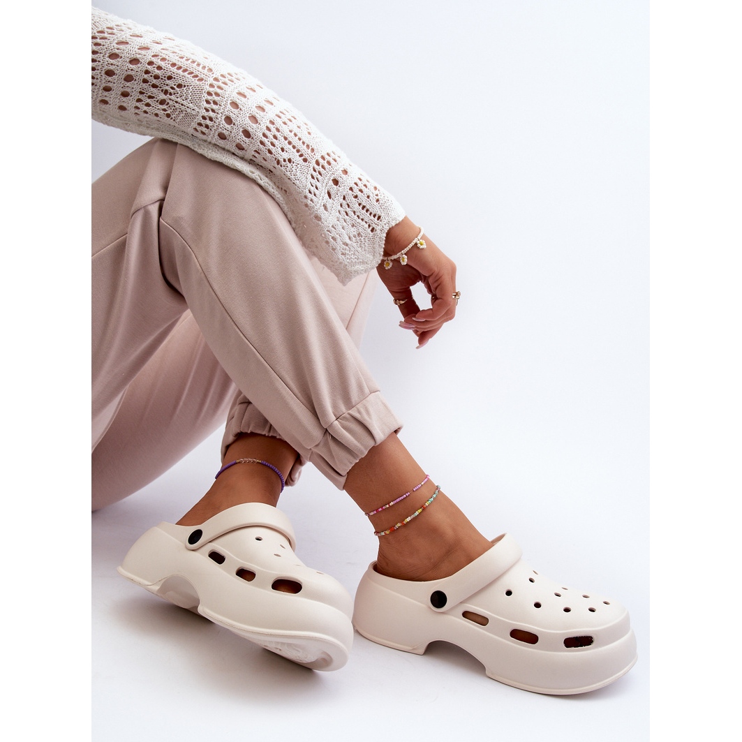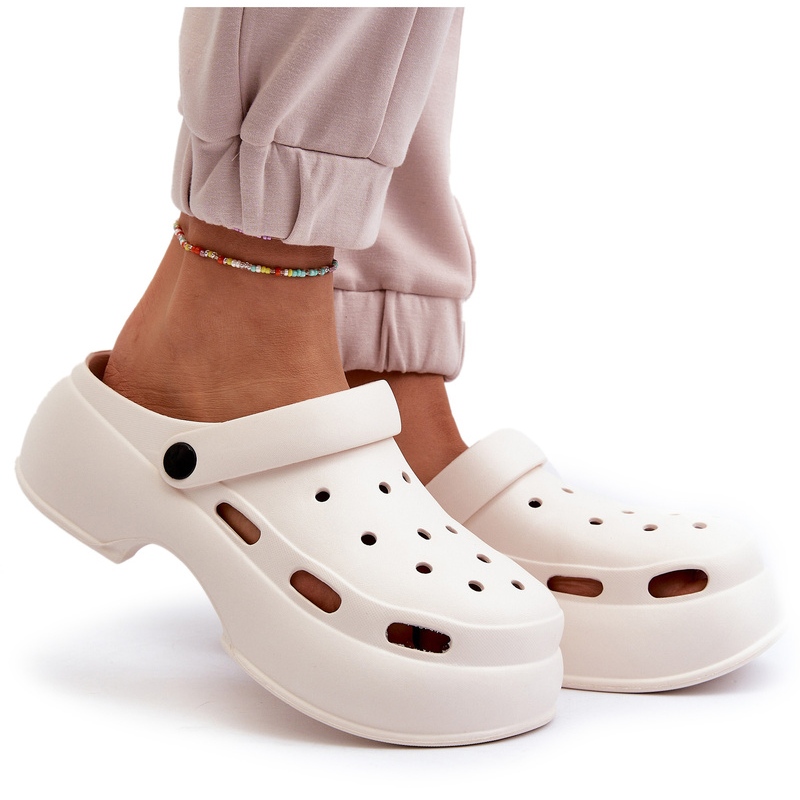 La sangle mobile garantit une excellente stabilité et protège contre le glissement désagréable du pied, tandis qu'une semelle massive d'une hauteur de 5 cm garantit un confort tout au long de la journée, même pendant les longues promenades. Les tongs sont conservés dans une couleur blanche minimaliste, ce qui les rend parfaitement mélangés avec diverses tenues, du décontracté à plus élégant.