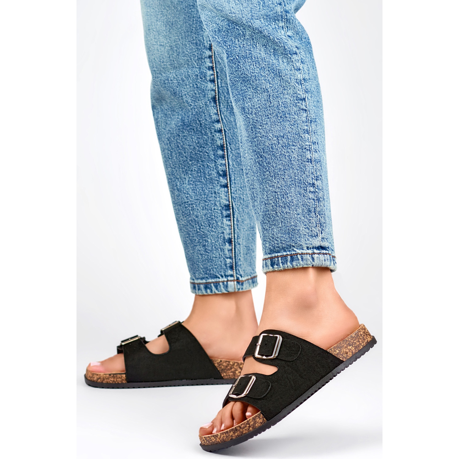 L'intérieur des tongs est doublé de cuir écologique, ce qui augmente le confort d'utilisation. La semelle utilisée, également de couleur noire, complète l'ensemble en leur conférant un caractère élégant. Parfaites pour le printemps et l'été, ainsi qu'un élément de style quotidien toute l'année, ces tongs deviendront sûrement une paire préférée dans votre garde-robe.