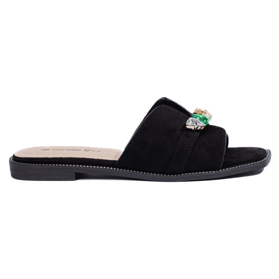 - Modèle: Tongs femme noires avec pierres