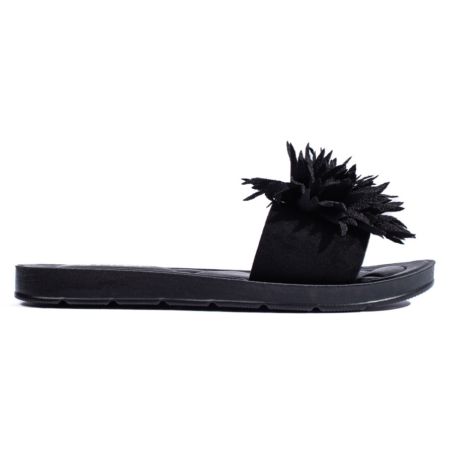 Voici le choix parfait pour chaque femme qui apprécie le confort et le style! Les pantoufles noires avec une fleur d'une autre marque sont une excellente proposition au quotidien. Fabriqués en cuir en daim écologique de haute qualité, ils offrent un confort de port et un look élégant.