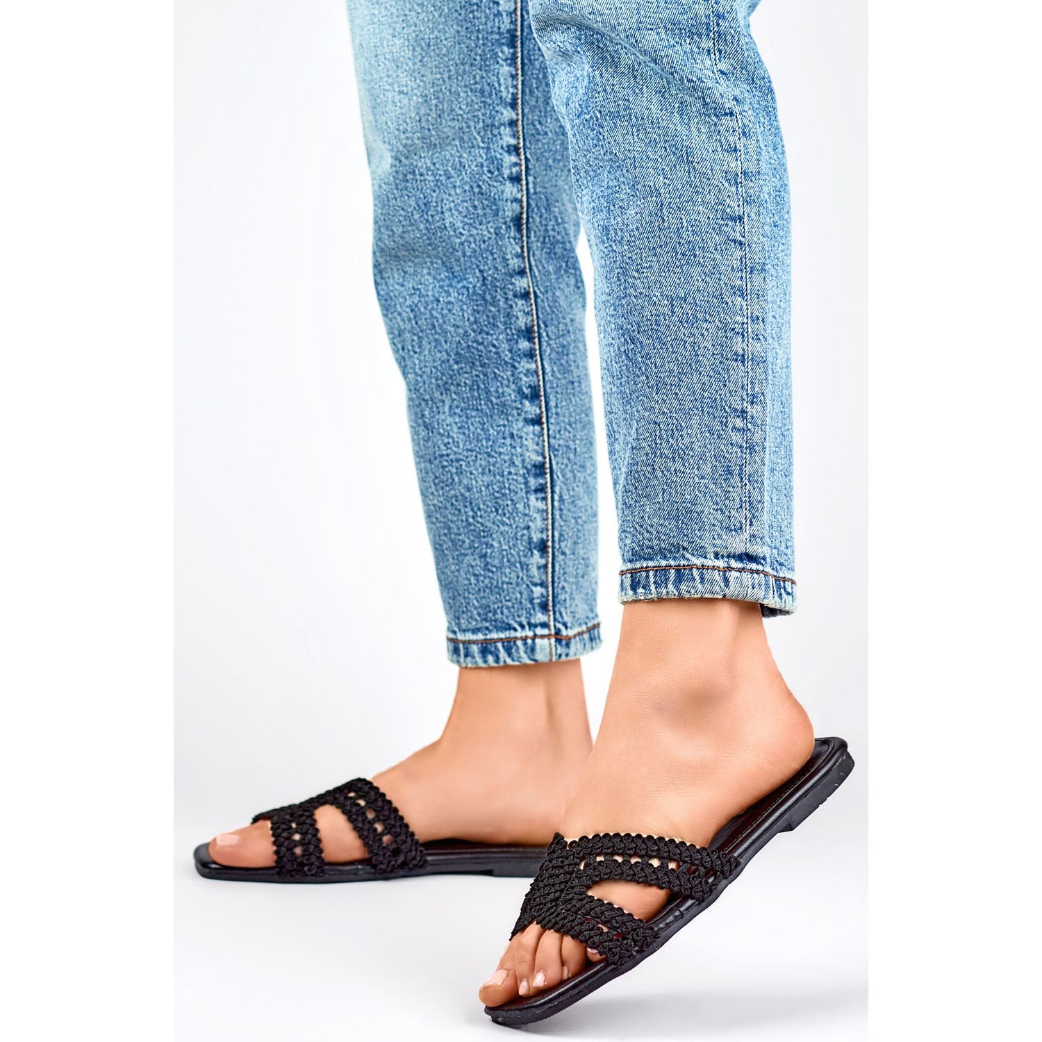 Détails: Tongs femme noires en dentelle à semelle plate le noir