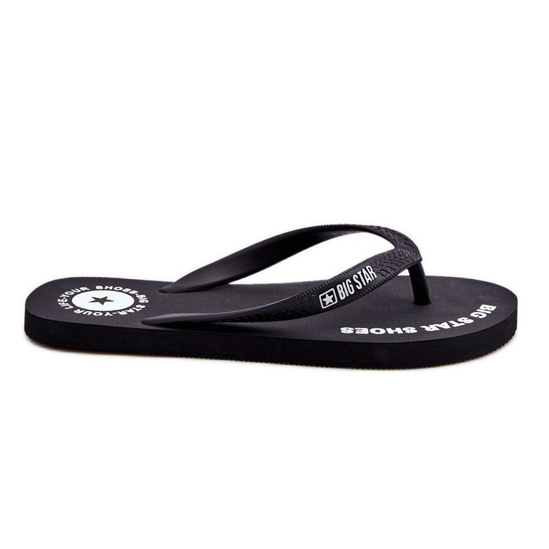 Men's Flip -Flops Big Star LL174423 - Un classique pour l'été, qui vaut la peine d'avoir dans le placard. Fabriqué en plastique durable et en caoutchouc noir, avec de larges bandes en caoutchouc décorées de livres et du logo de la marque. Une coupe simple et intemporelle fonctionnera à la fois sur la plage et près de la piscine, ainsi que dans les stylisations d'été de tous les jours.