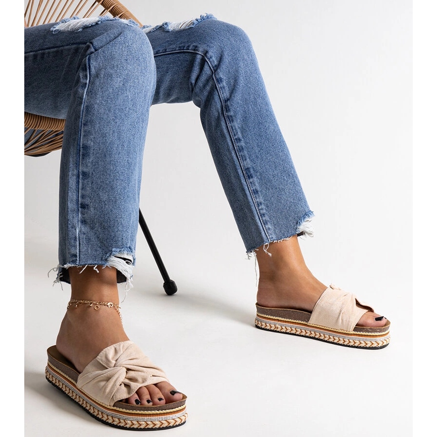 Un élément caractéristique des volets de Nibalie est un arc spectaculaire, qui leur donne un charme unique. La fixation de glissement permet une mise en place rapide et facile, ce qui en fait le choix parfait au quotidien. La couleur beige s'adaptera certainement à de nombreux styles, et la semelle noire en caoutchouc offre non seulement de la force, mais aussi du confort lors du port.