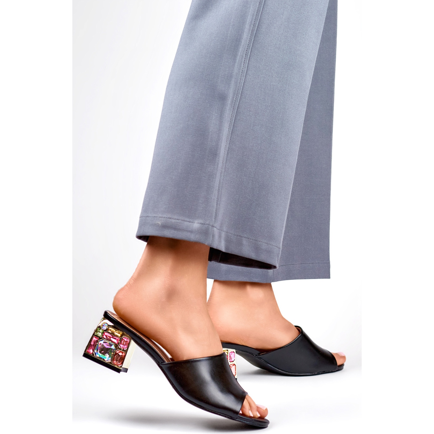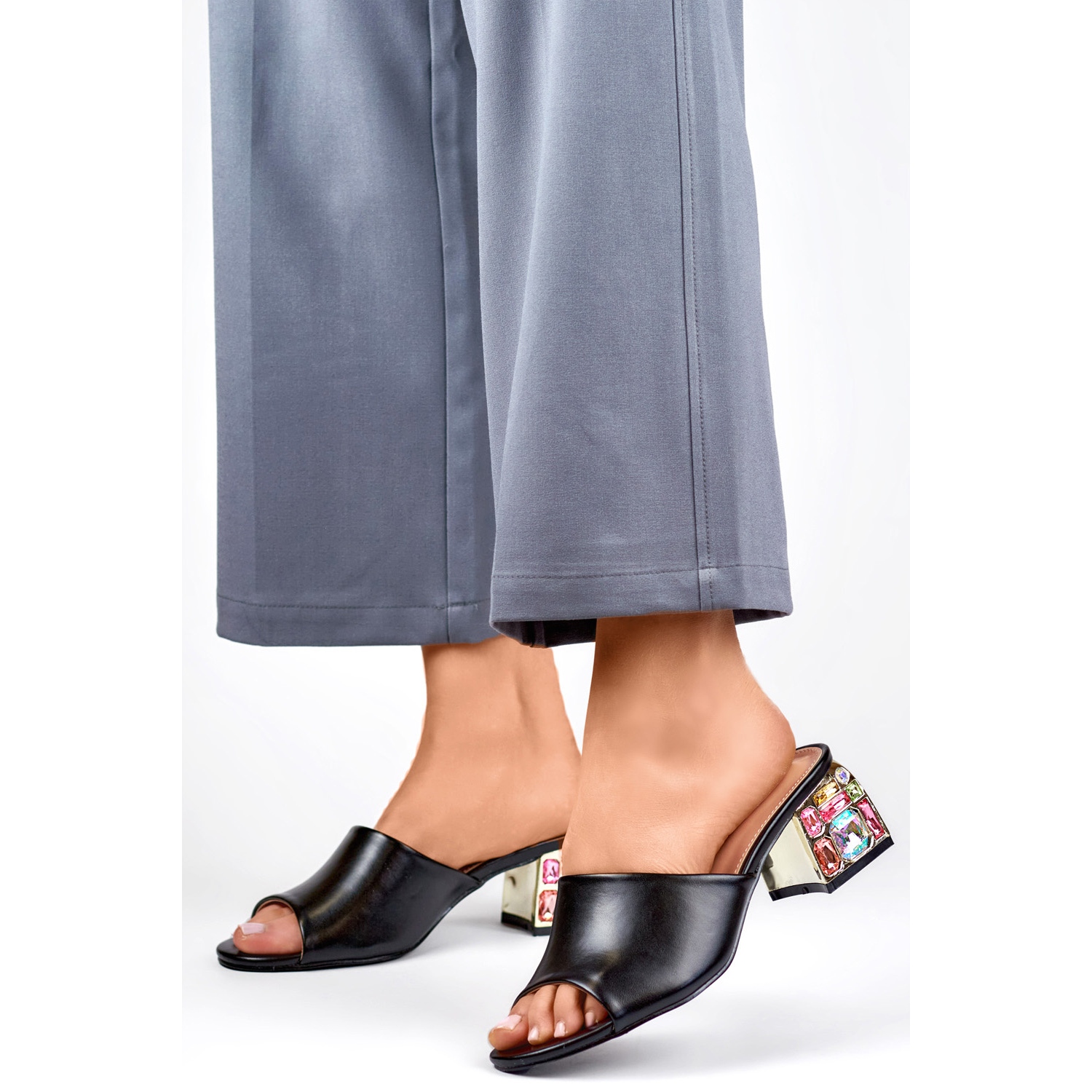 Détails: Tongs noires à talons bas pour femmes avec cristaux le noir