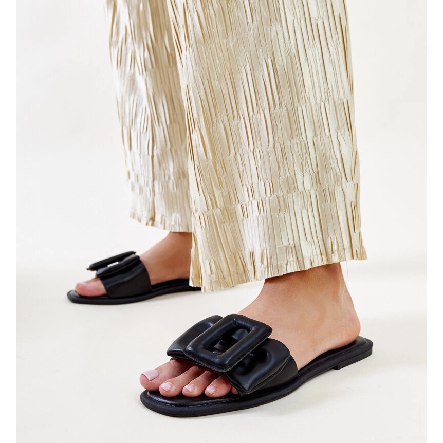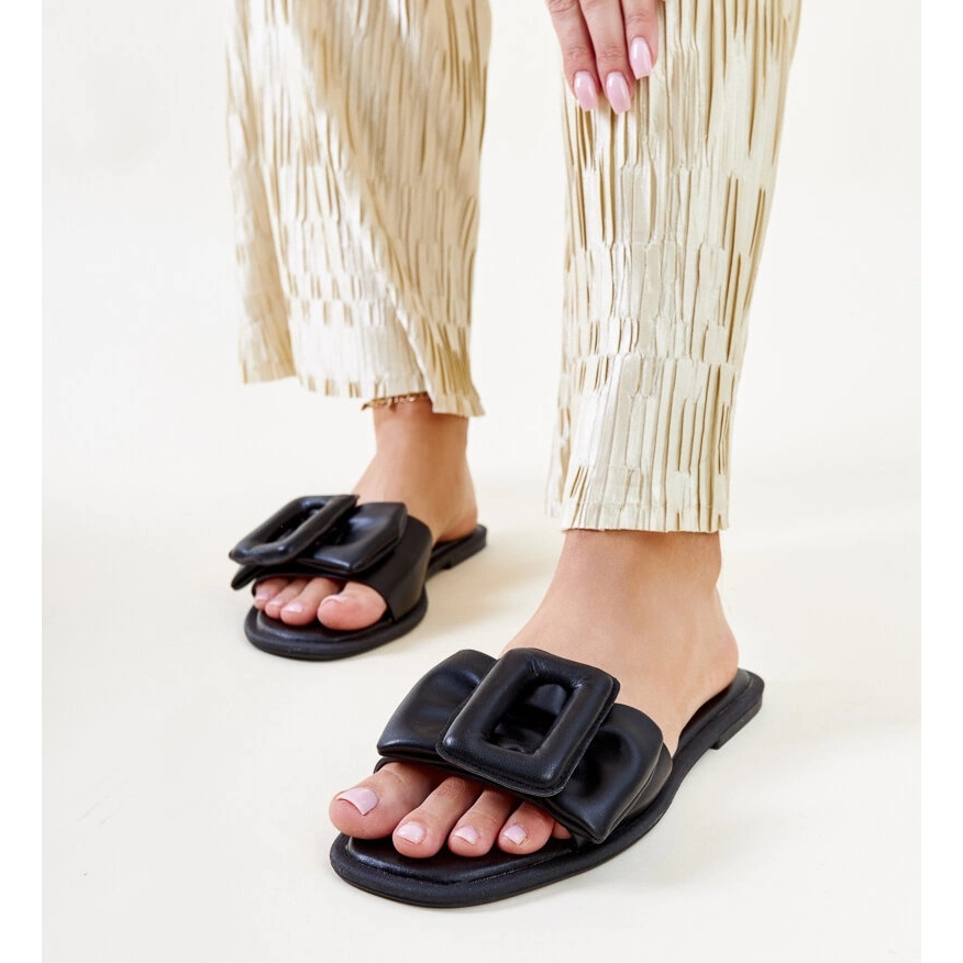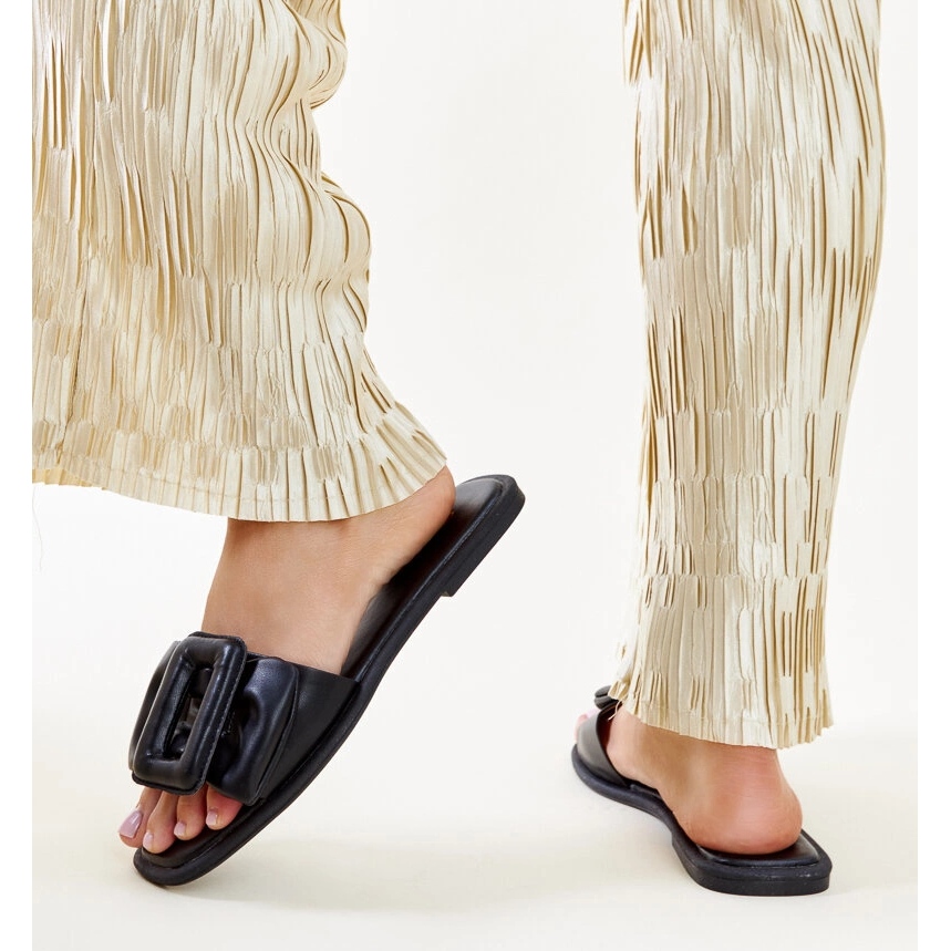 N'attendez pas! Ces tongs noirs avec une boucle sont un véritable succès qui vaut la peine d'avoir dans votre garde-robe. Choisissez le confort et le style qui vous accompagneront certainement tout au long de l'été!