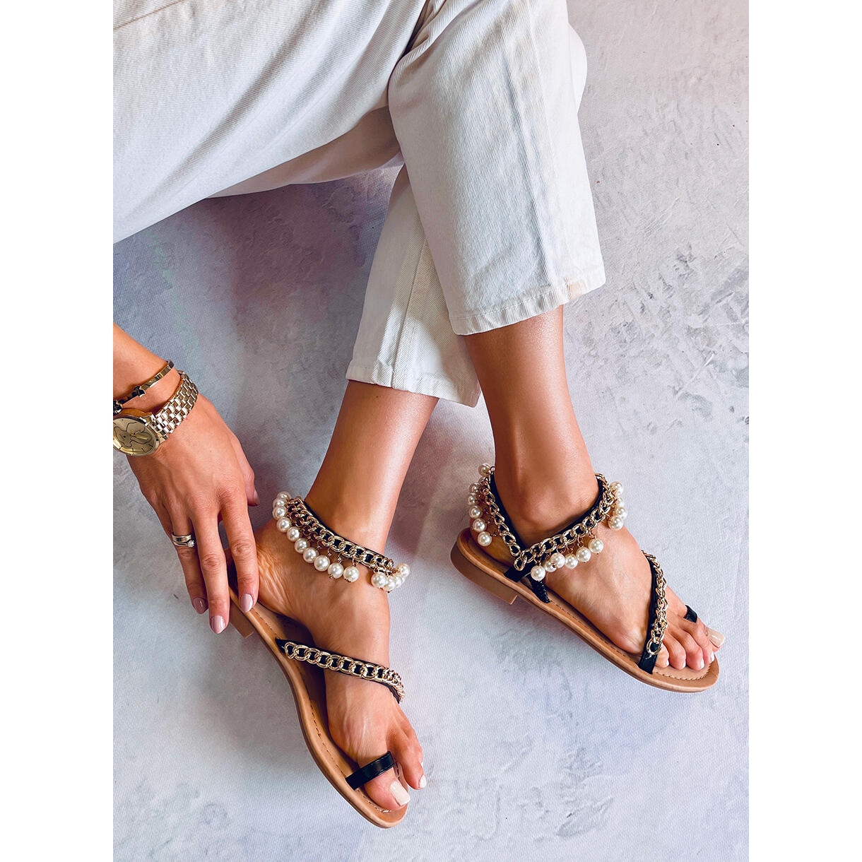 Détails: Tongs noires avec perles JH186P Noir le noir d'or
