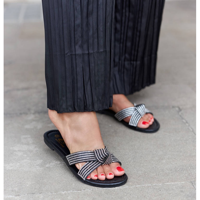Détails: Tongs noires ornées de zircons Loreto le noir