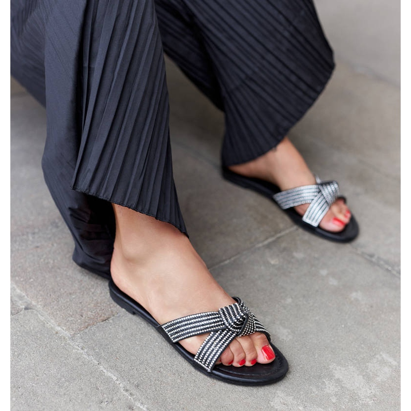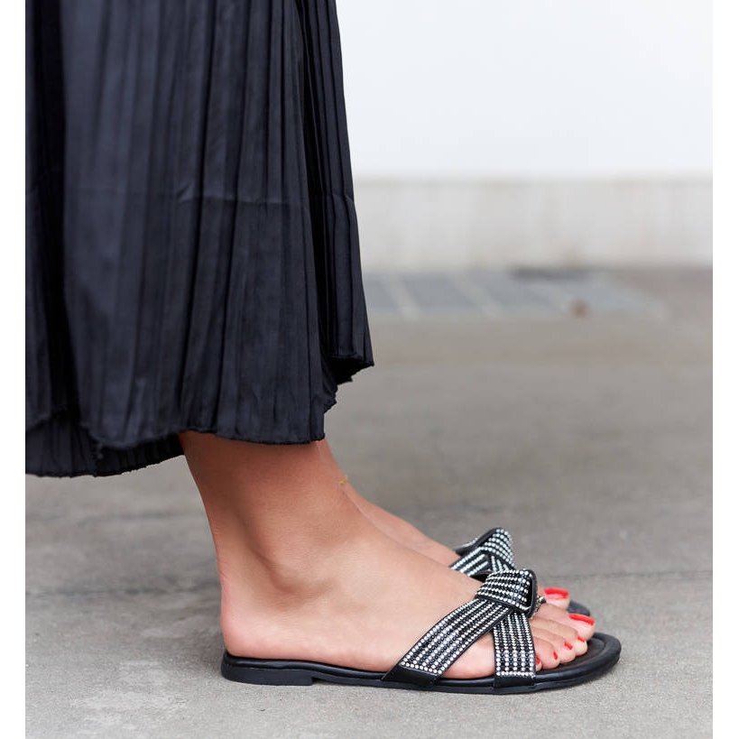 Inna marka Tongs noires ornées de zircons Loreto le noir