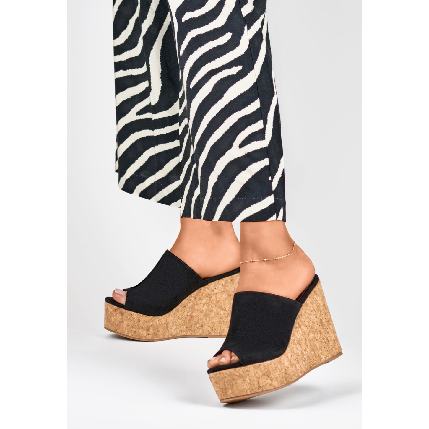 Inna marka Tongs noires sur talon compensé en liège le noir