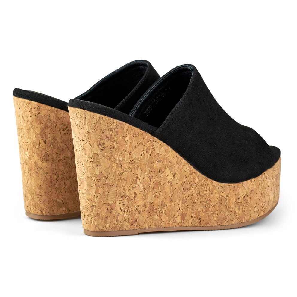 Fabriquées en daim écologique, les tongs offrent confort et légèreté, et leur élégante couleur noire les rend faciles à assortir à diverses tenues. La hauteur du talon de 11,5 cm mettra en valeur votre silhouette et ajoutera de la féminité, et la cale en liège garantit stabilité et confort à chaque pas.